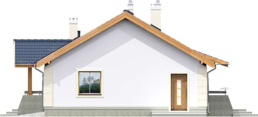 Prosty i funkcjonalny dom o wyglądzie klasycznego dworku z garażem i kotłownią na paliwo stałe. Z kuchni można przejść do części salonu, gdzie może stać stół jadalniany, a jednocześnie kuchnia jest usytuowana tak, by nie było jej widać z salonu. Obok kuchni znajduje się spiżarnia, a przy wejściu dodatkowe pomieszczenie gospodarcze, które może pełnić rolę garderoby. W domku można też wykorzystać stryszek, dostępny poprzez schody składane, chowane w stropie.