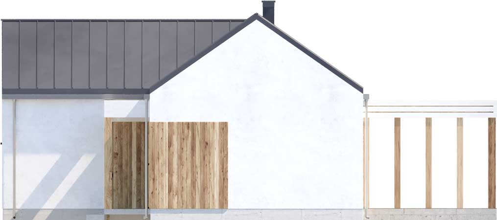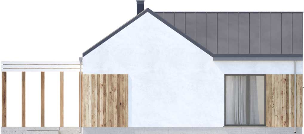 Ribeira II to propozycja dla Inwestorów, których zainteresował projekt Ribeira, jednak nie mogą na swojej działce wybudować domu z płaskim dachem. Nowoczesny, nieduży dom parterowy z dachem dwuspadowym. Jego sercem jest salon z kuchnią, w którym domownicy mogą wspólnie spędzać czas. Część nocna domu to dwie sypialnie i łazienka. Ribeira II to dom otwarty dla gości, gdyż obok salonu zlokalizowany jest dodatkowy pokój z własną łazienką. Może on też służyć jako sypialnia rodziców, którzy swoim pociechom zostawiają do dyspozycji drugą część domu. Pomieszczenie gospodarcze zlokalizowane niedaleko kuchni może posłużyć również jako spiżarka. Wnętrza są bardzo dobrze doświetlone dużymi przeszkleniami, co w połączeniu z dużym tarasem daje odczucie przestronności mimo niewielkiej powierzchni domu. W projekcie przewidziano ogrzewanie kotłem na gaz. Możliwa jest zmiana ogrzewania na pompę ciepła.