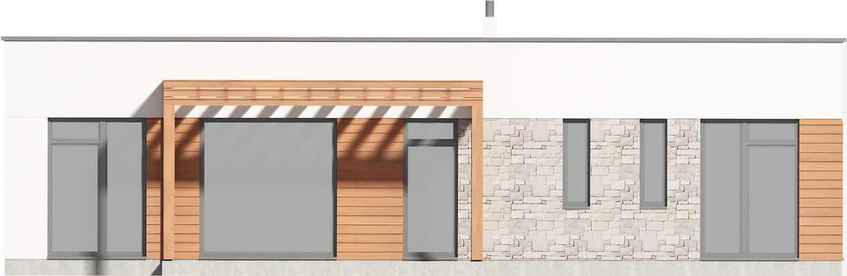 Ribeira to nowoczesny dom parterowy z płaskim dachem, przewidziany w standardzie energooszczędnym. W domu zaplanowano ustawny salon, otwartą kuchnię z jadalnią i trzy sypialnie oraz łazienkę i toaletę. Jedna sypialnia jest duża, dwie natomiast mniejsze – jedna z nich zlokalizowana jest w części prywatnej, druga natomiast obok salonu. Taka lokalizacja sprawia, że z powodzeniem sprawdzi się ona jako pokój gościnny lub gabinet. Otwarcie kuchni na salon powoduje natomiast, że pomieszczenie zyskuje na przestrzenności, jest doskonale doświetlone naturalnym światłem i stanowi przyjazne mieszkańcom miejsce do wspólnego spędzania czasu. W projekcie przewidziano ogrzewanie kotłem na gaz. Możliwa jest zmiana ogrzewania na pompę ciepła.