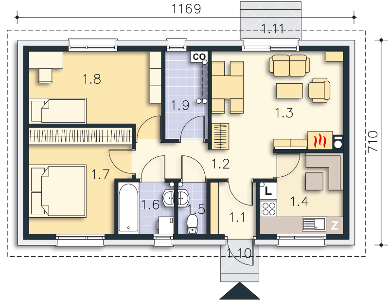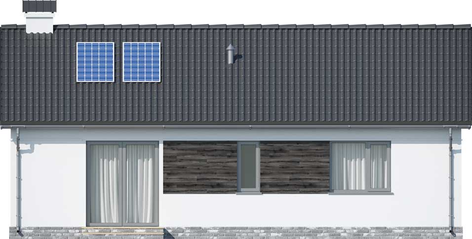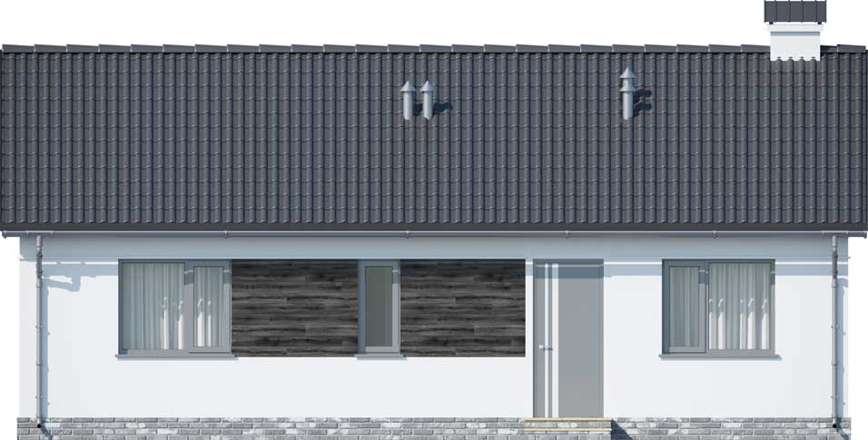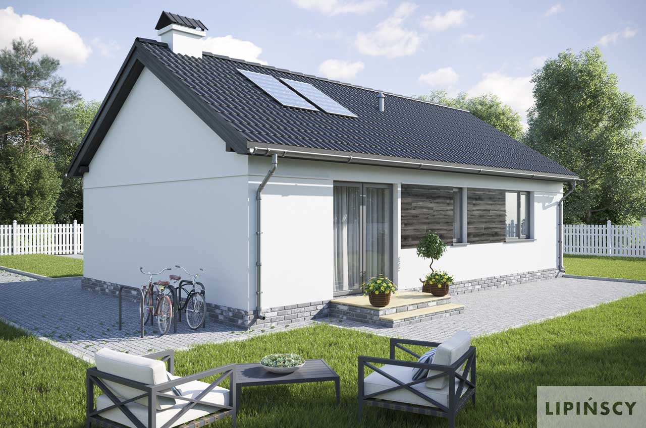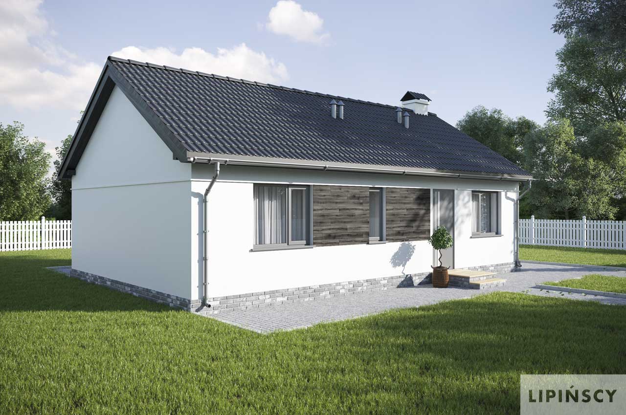 Ten kompaktowy, śliczny domek, jest niewielki - jedynie 63 m2 i ma doskonale rozplanowane wnętrze. W strefie dziennej znajduje się salon z jadalnią i kuchnią. Po lewej stronie domu umieszczono dwie sypialnie i łazienkę, toaletę oraz pomieszczenie gospodarcze. Urządź dom na swój sposób i daj się zaskoczyć funkcjonalnością, jaką oferuje ten projekt. To doskonała alternatywa dla mieszkania w bloku, a ileż przyjemniejsza. Budując dom według tego projektu można szybko i stosunkowo niewielkim kosztem zrealizować marzenie o własnym dachu nad głową. Dom ma prostą konstrukcję i mieści się na niewielkie działki, co też jest nie bez znaczenia.