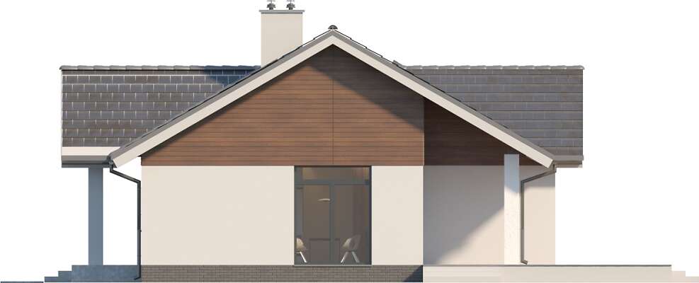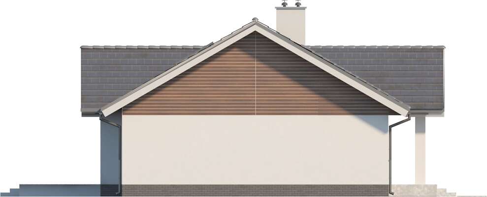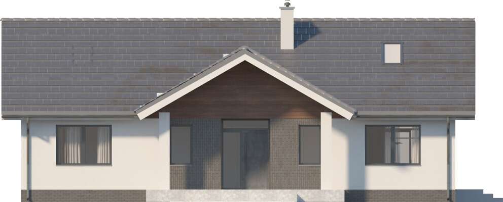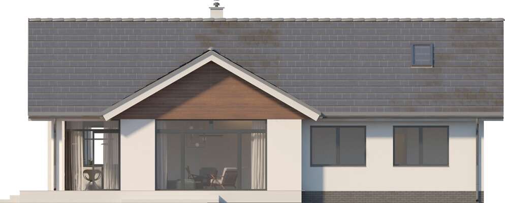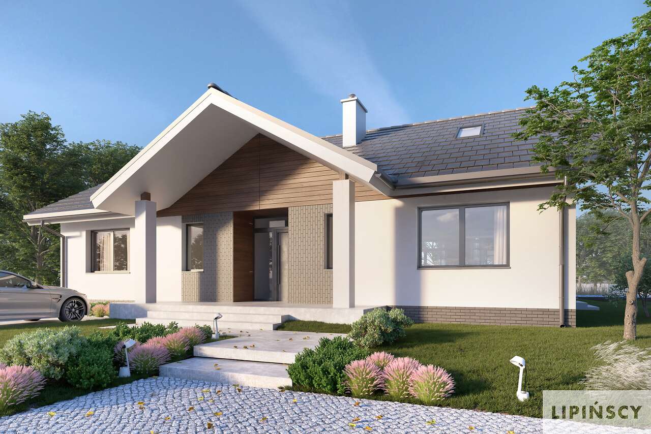 Wygodny dom energooszczędny, parterowy, o bardzo dobrze rozplanowanej funkcji, z wyraźnym podziałem na strefę wspólną oraz część prywatną. W części wspólnej znajduje się duży, jasny salon, kącik jadalny, zlokalizowany przy dużych przeszkleniach i ustawna kuchnia z sąsiadującą pralnią z kotłownią. Atutem domu są trzy sypialnie, w tym jedna z własną łazienką i garderobą. Jest także dodatkowa, wspólna łazienka. Dom jest niedrogi w realizacji, a przy tym w kosztach ogrzewania. W projekcie przewidziano ogrzewanie kotłem na gaz. Możliwa jest zmiana ogrzewania na pompę ciepła.