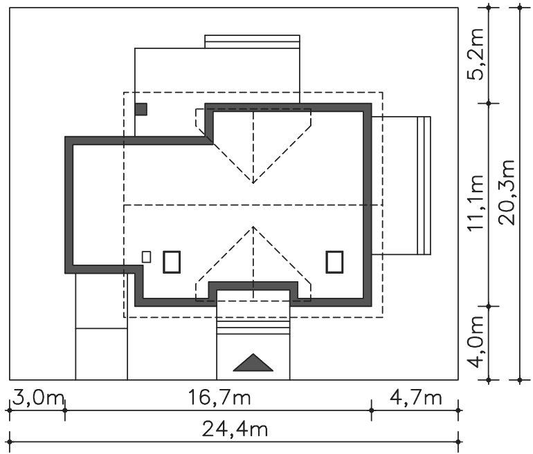 Co można zrobić, by dom zmieścił się na działce 24m? W projekcie szerokość działki to 24,4m.
