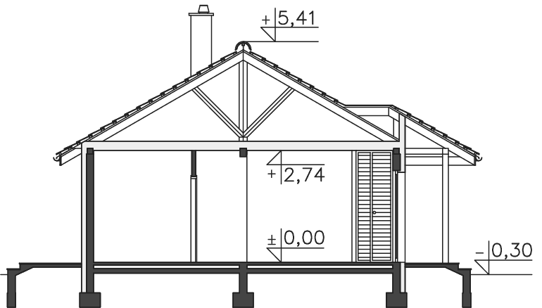 Dom jest zaprojektowany, jako weekendowy. Aby mógł być wykorzystywany, jako całoroczny architekt adaptujący projekt do działki musi nanieść na niego kilka zmian, tj: doprojektowanie instalacji centralnego ogrzewania.