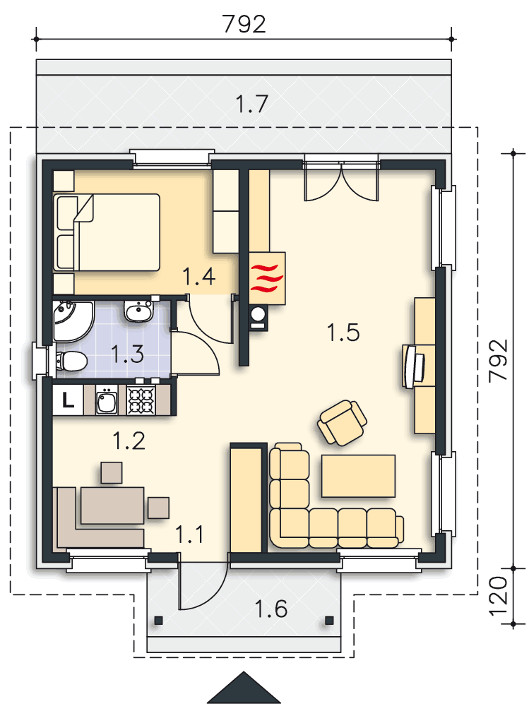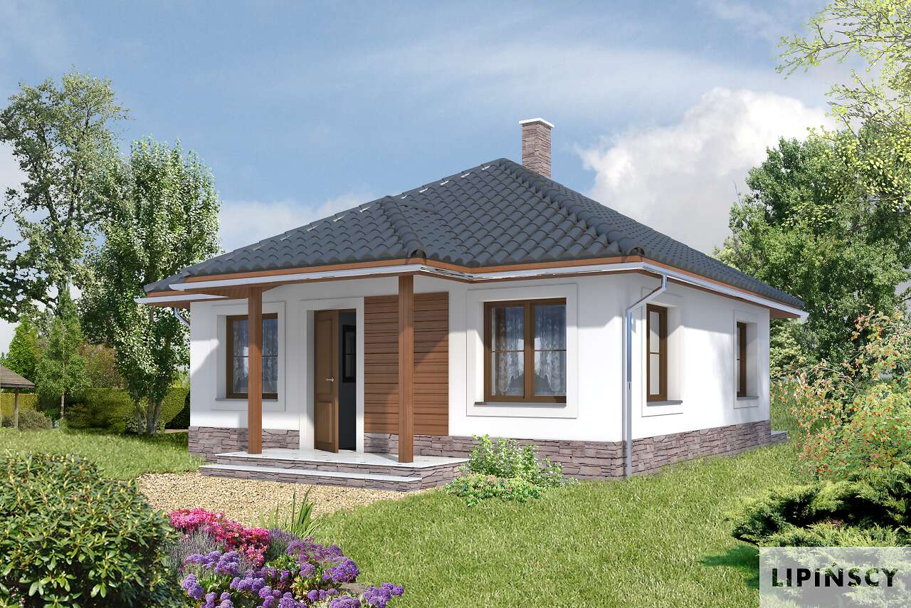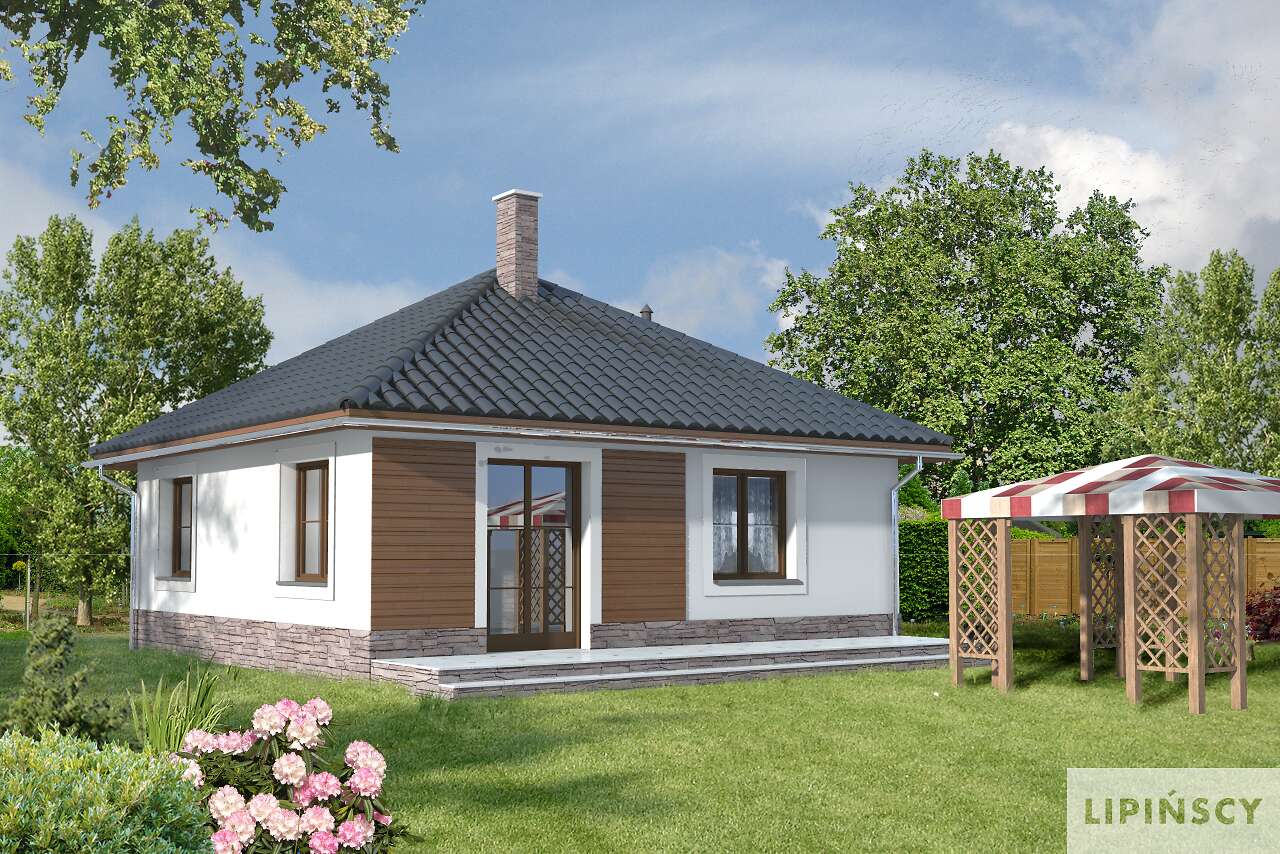 W tym niewielkim, ale bardzo wygodnym i atrakcyjnym domku można spędzić bardzo udany weekend. Funkcja pozwala na pomieszczenie czterech - pięciu osób w dwóch pokojach, z których jeden jest przewidziany jako sypialnia, drugi zaś spełnia rolę saloniku. Przestrzeń pokoju dziennego dodatkowo powiększa duży taras. Funkcjonalność to duży atut tego projektu.