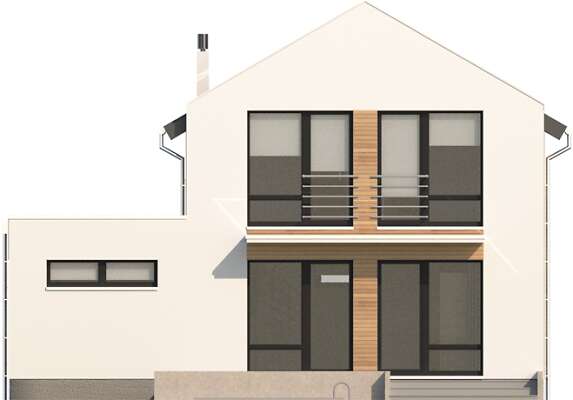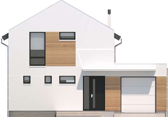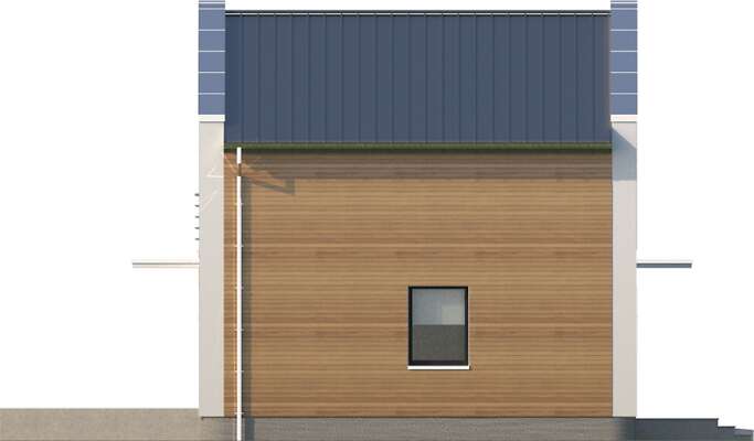 Przytulny i funkcjonalnie rozplanowany, kompaktowy dom jednorodzinny, przewidziany w standardzie energooszczędnym, idealny dla niewielkiej rodziny. Parter w całości przeznaczono na jedną część wspólną, do której należy kuchnia, jadalnia i salon z przeszklonym wyjściem na taras. Kręcone schody dodają pomieszczeniu uroku i prowadzą na drugą kondygnację, gdzie znajdują się trzy sypialnie i łazienka. W zwartą, prostą bryłę domu wpisano garaż na jedno auto, za którym znajduje się kotłownia.