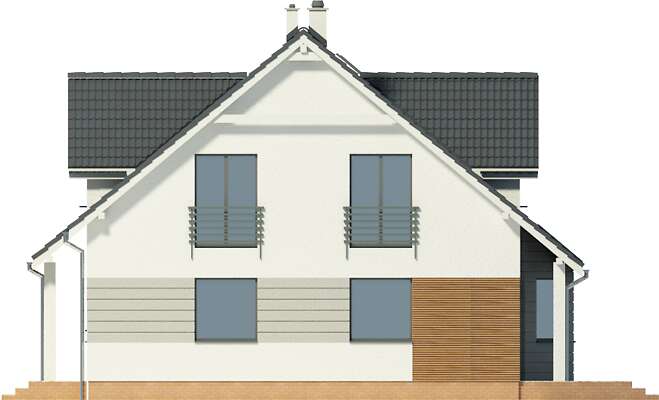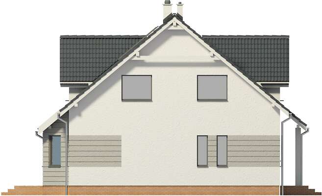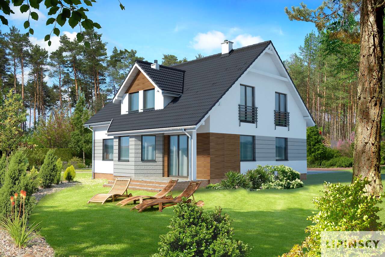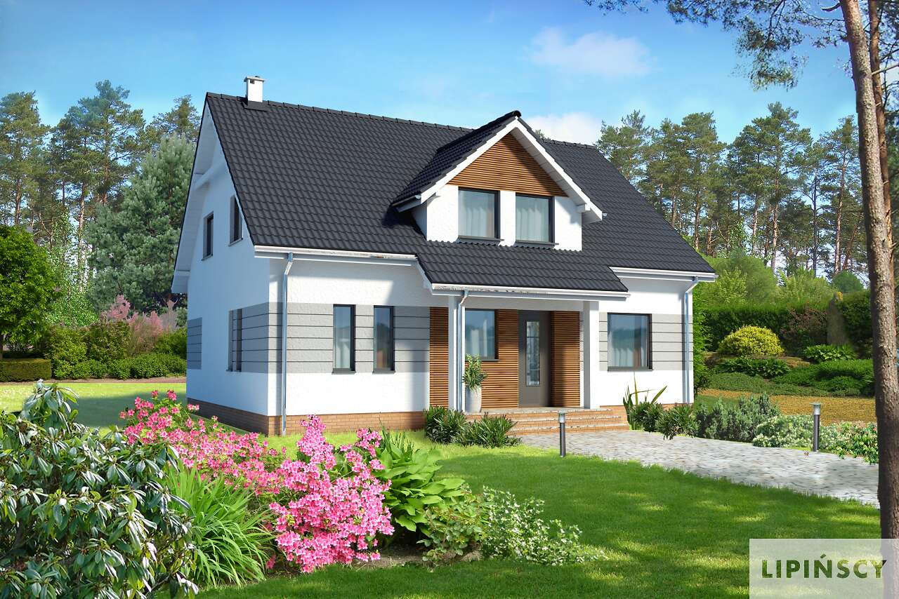 Bardzo wygodny dom o tradycyjnej bryle, a jednocześnie zawierający w sobie elementy domu nowoczesnego. Z przestronnego holu, otwartego na pokój dzienny widzimy znajdujący się za trójbocznym wykuszem ogród. Po prawej stronie znajduje się duża kuchnia, a po lewej zaciszny pokój, który idealnie nadaje się na sypialnię dla rodziców. Na poddaszu natomiast zostały zaprojektowane trzy przestronne i dobrze doświetlone sypialnie oraz piękna łazienka. Dostępna jest wersja standardowa Hamilton (LMP94).