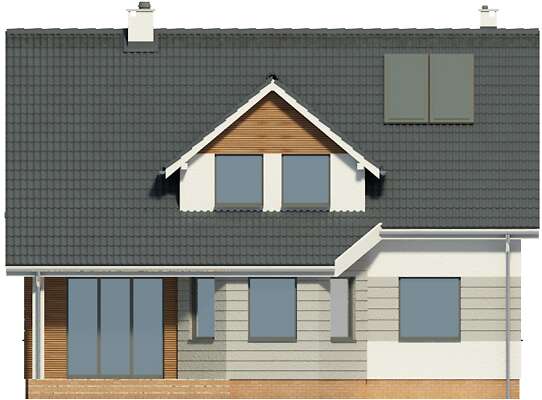 Jak najbardziej można zrezygnować z lukarny od strony ogrodowej, a pokoje doświetlić oknami połaciowymi. Drzwi zewnętrzne do pomieszczenia gospodarczego i dodatkowe okno także można bez problemu doprojektować. Takie zmiany może nanieść na projekt każdy architekt w ramach adaptacji projektu do działki.