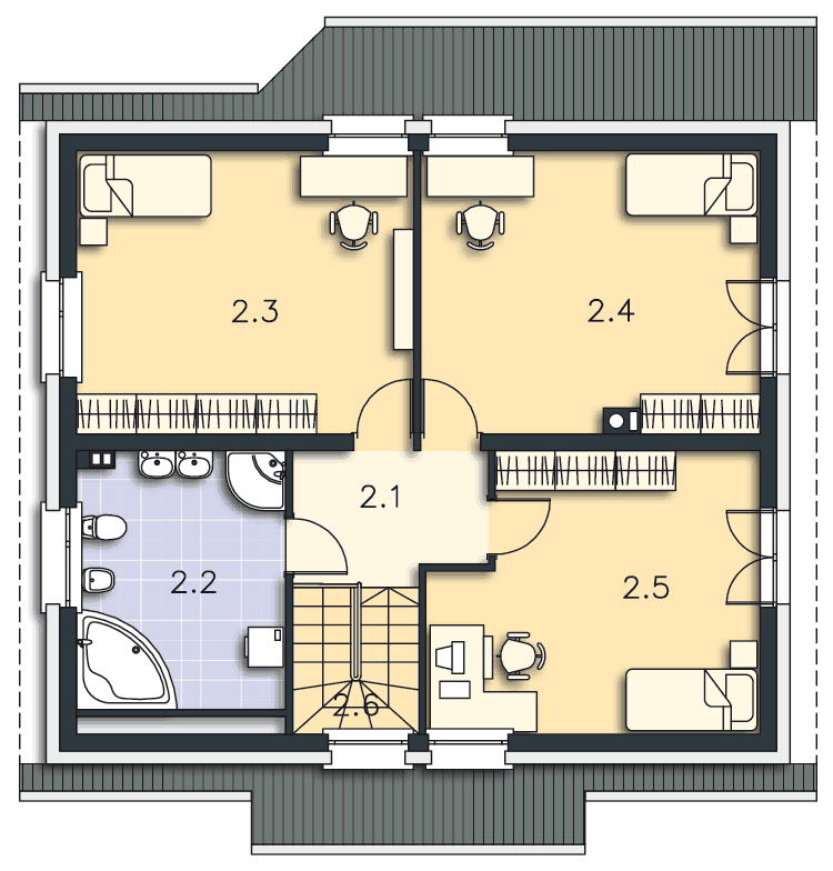 Projekt Salzburg jest optymalny dla rodziny 4 osobowej. Dodatkowo ma tradycyjną konstrukcję,która jednocześnie łączy w sobie również ciekawe nowoczesne elementy. Dobrze rozwiązane zostało rozmieszczenie pomieszczeń.