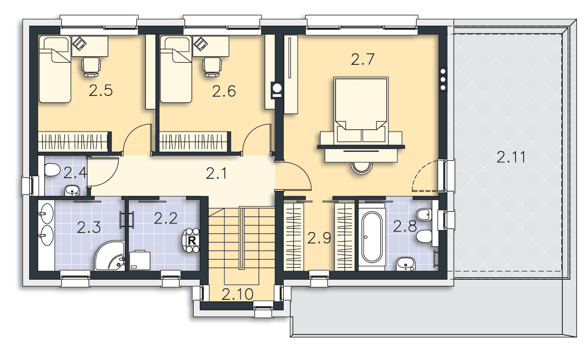 2. nad garażem zamiast tarasu wydłużyć pierwsze piętro;