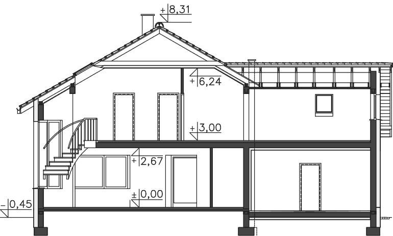 Ad.3 Dach można podnieść poprzez podwyższenie ścianki kolankowej częsci nad garażem.