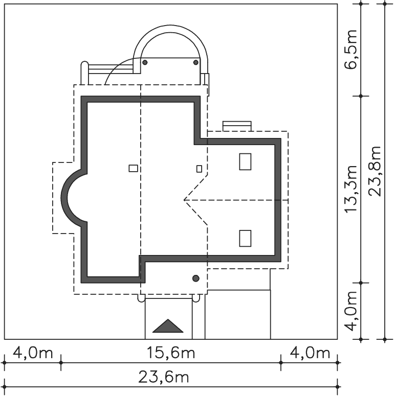 | Min. szerokość działki | 23,60m x 23,80m |