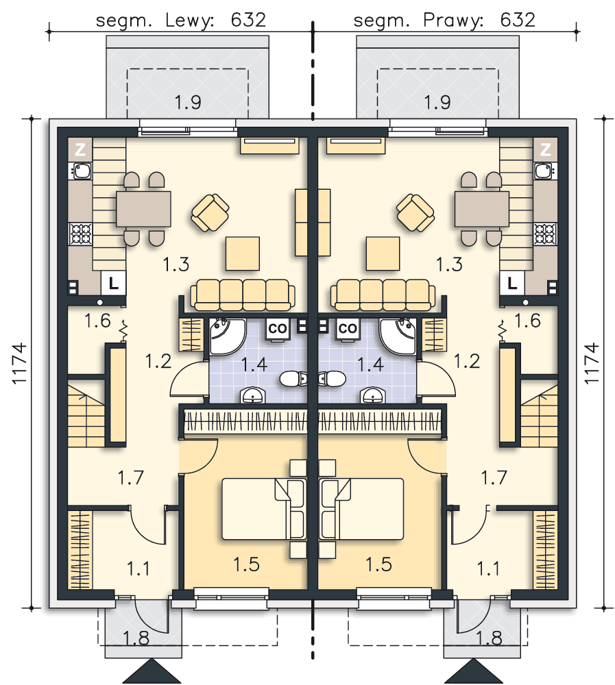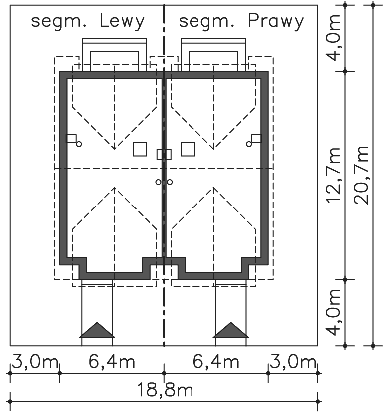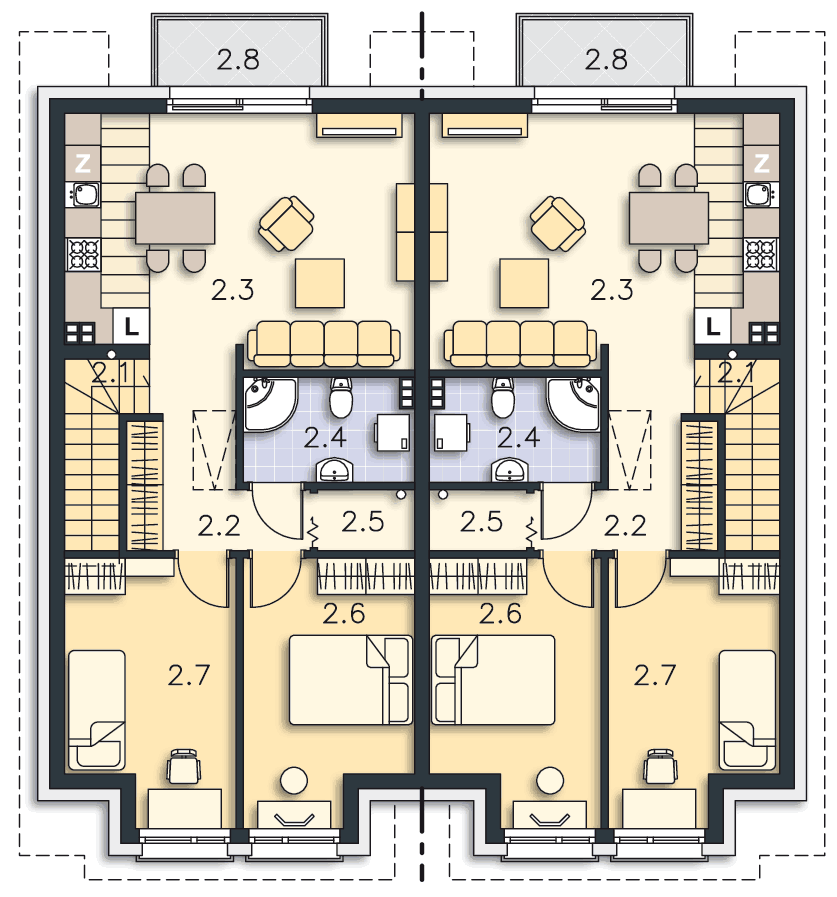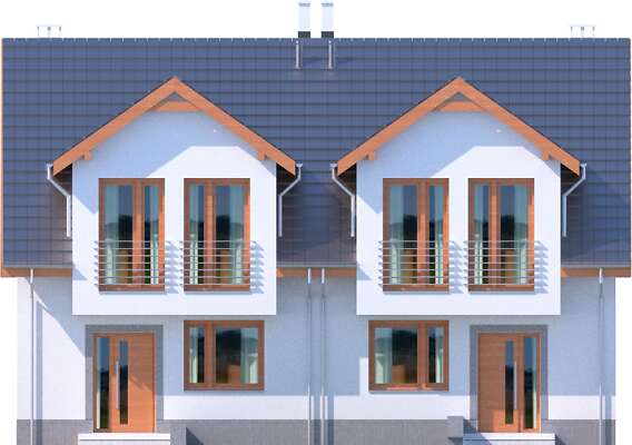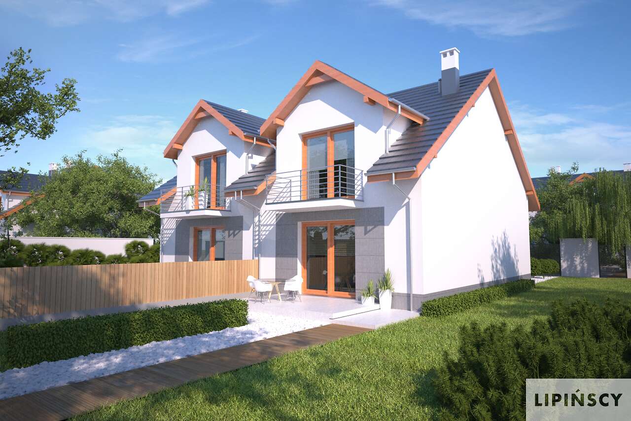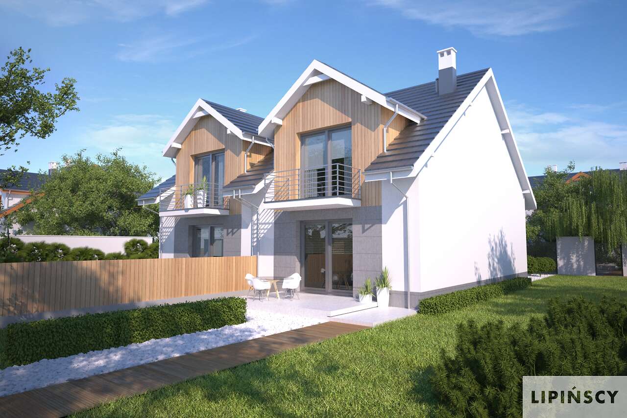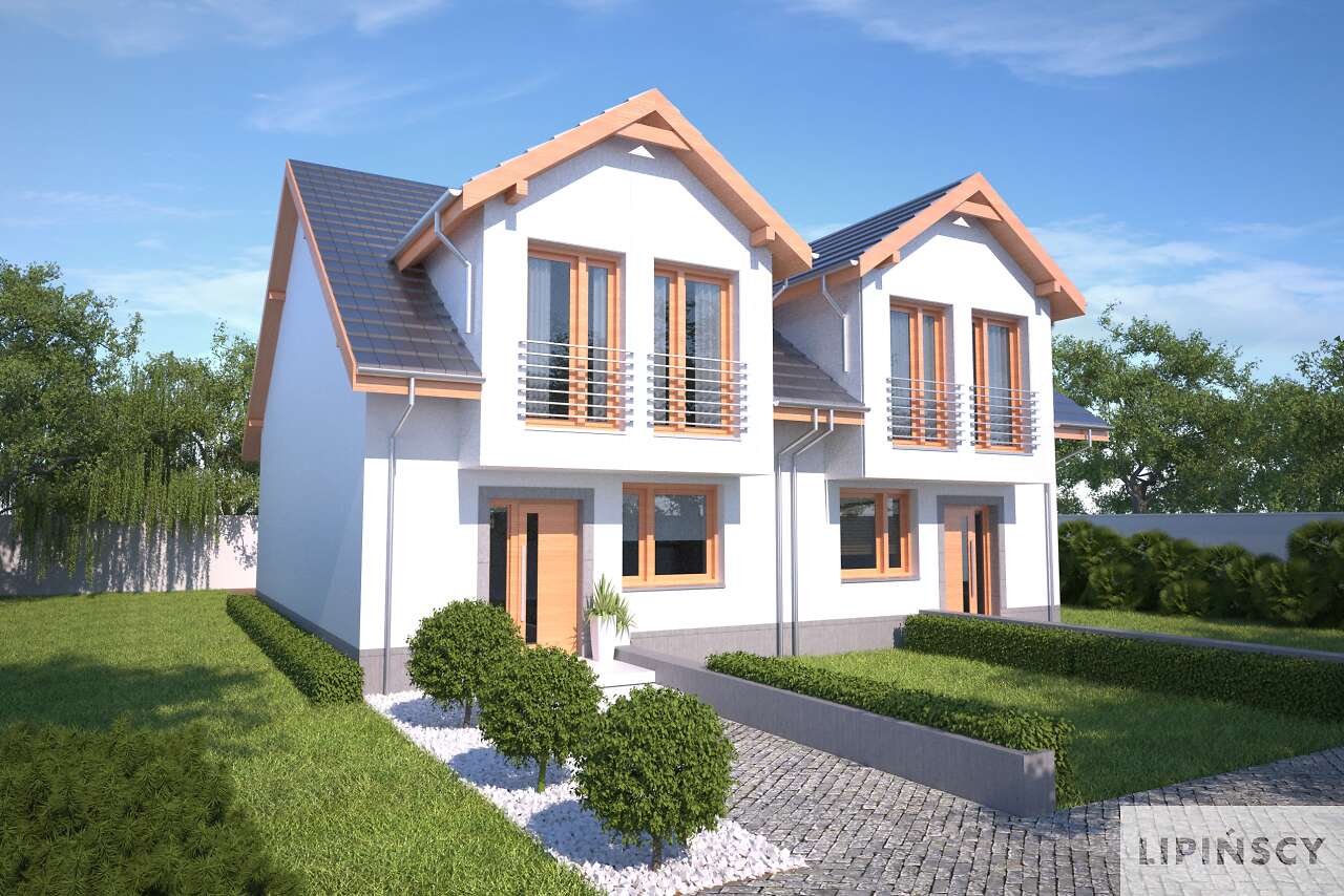 Dom do zabudowy bliźniaczej (także z możliwością budowy tylko jednego segmentu), z użytkowym poddaszem i opcją użytkowania 4 niezależnych mieszkań. Na parterze zlokalizowano salon z aneksem kuchennym, wygodną sypialnię oraz łazienkę. W wiatrołapie zmieściły się podręczne szafy, jest tu także przydatny schowek. Poddasze to salon z aneksem kuchennym raz dwie sypialnie, łazienka i schowek. Takie rozplanowanie przestrzeni doskonale sprawdza się w przypadku wynajmu mieszkań lub kiedy dom zamieszkują rodzice, potrzebujący opieki dzieci, a mieszkańcy chcą przy tym zachować niezależność.