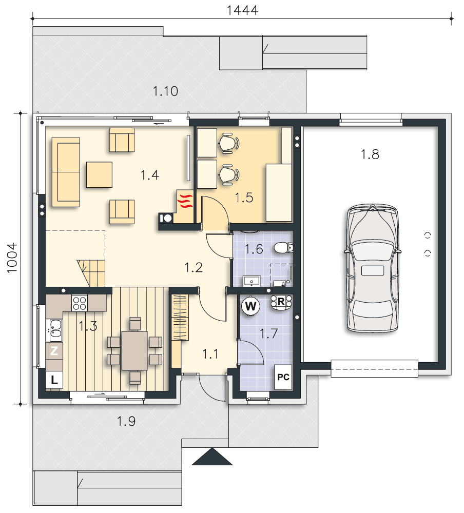 | 1.4 | Pokój dzienny | 25,85m2 (27,75m2) |