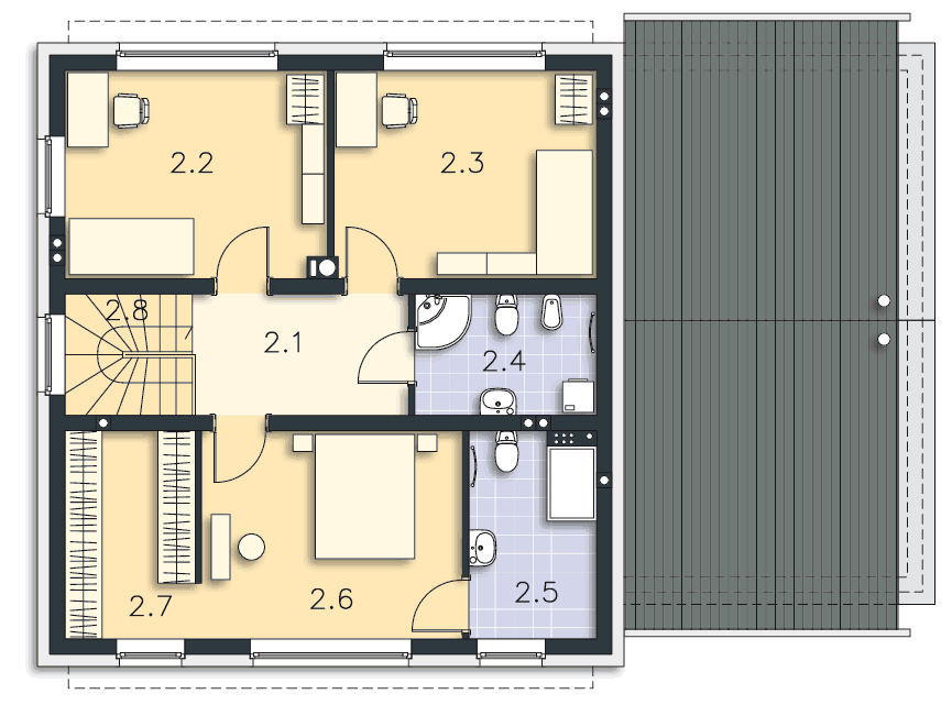 Skomentujokno dachowe na połaci frontowej doświetla sypialnię tak? Jest przewidziana otwarta przestrzeń nad stropem?
