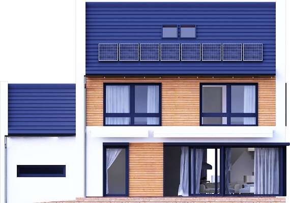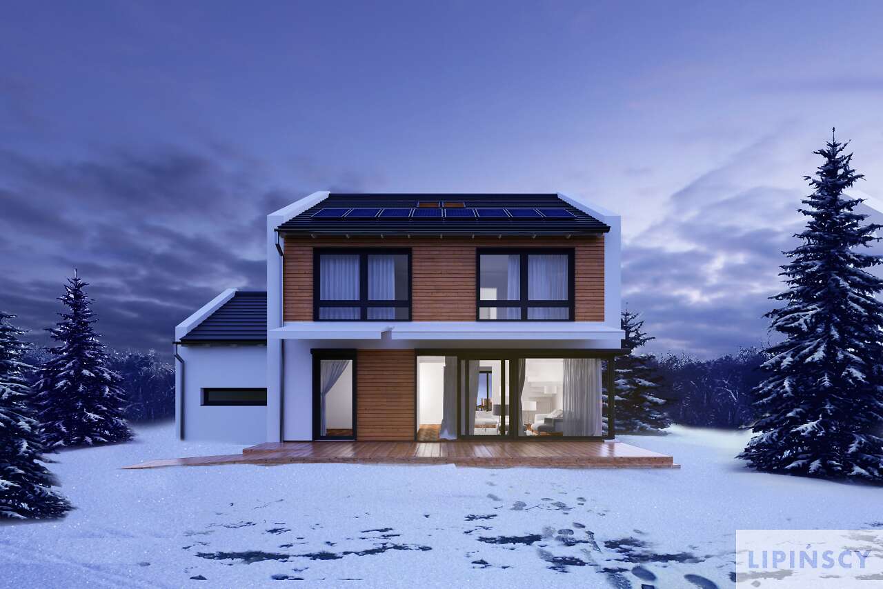 W projekcie zastosowano panele fotowoltaiczne, rekuperację, pompę ciepła, energooszczędną stolarkę oraz dodatkowe ekologiczne rozwiązania jak np. zbiornik na deszczówkę. Spełnia on warunki techniczne obowiązujące od 2021 roku.