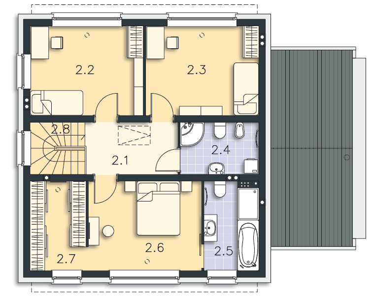 Można zmienić kąt nachylenia dachu i wprowadzić skosy na poddaszu.