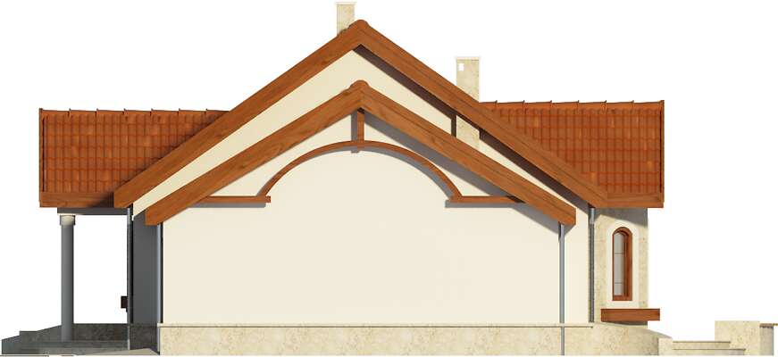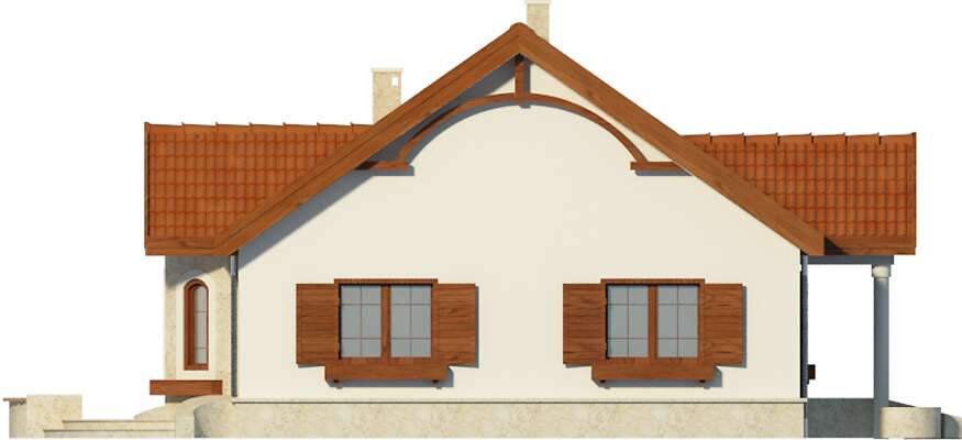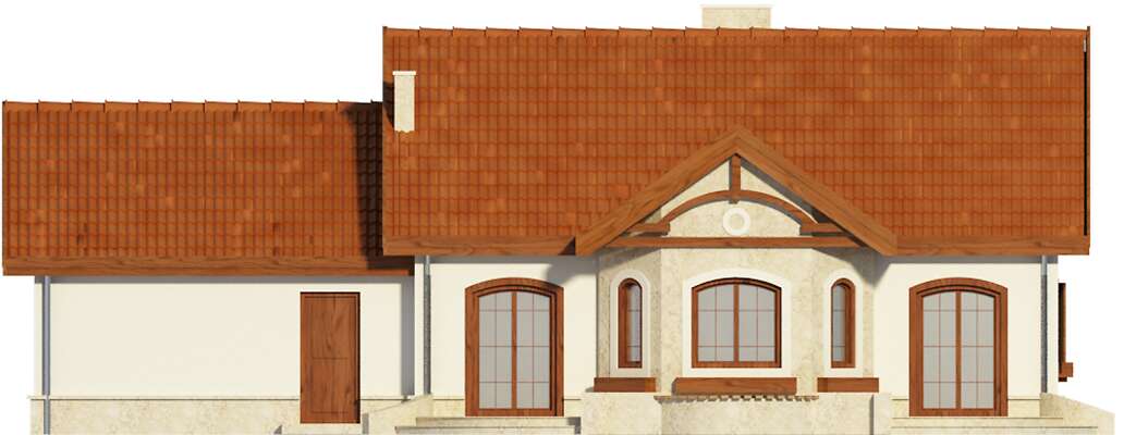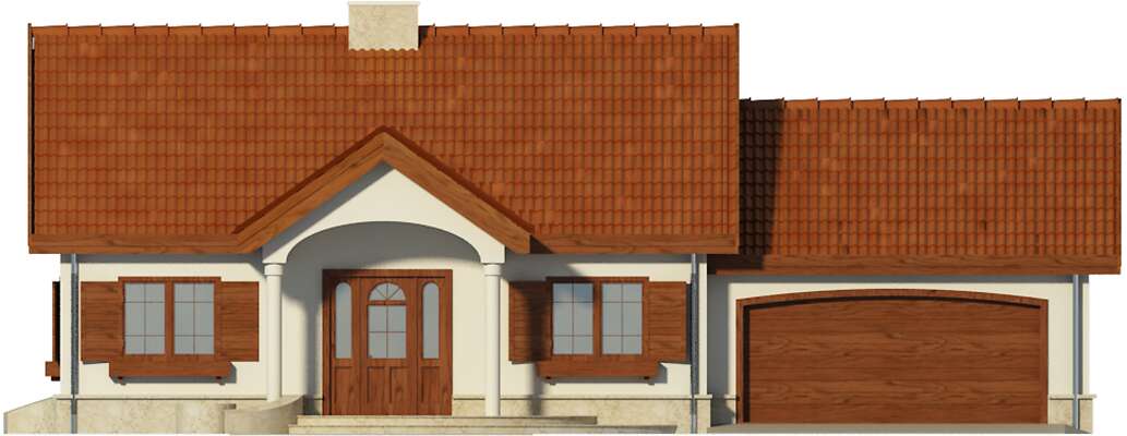 Kolejna wersja uroczego niewielkiego domu Sofia, tym razem z garażem na dwa auta i drewnianym stropem. Atrakcyjna bryła, urozmaicona pięknie zaprojektowanym wejściem i wykuszem ogrodowym, kryje funkcjonalne wnętrze. Do dyspozycji mieszkańców przewidziano salon z kominkiem, dużą kuchnię, dwie ustawne sypialnie i wygodną łazienkę. Zlokalizowana za garażem kotłownia, z niezależnym wyjściem na zewnątrz, pozwala na umieszczenie w niej pieca na paliwo stałe.