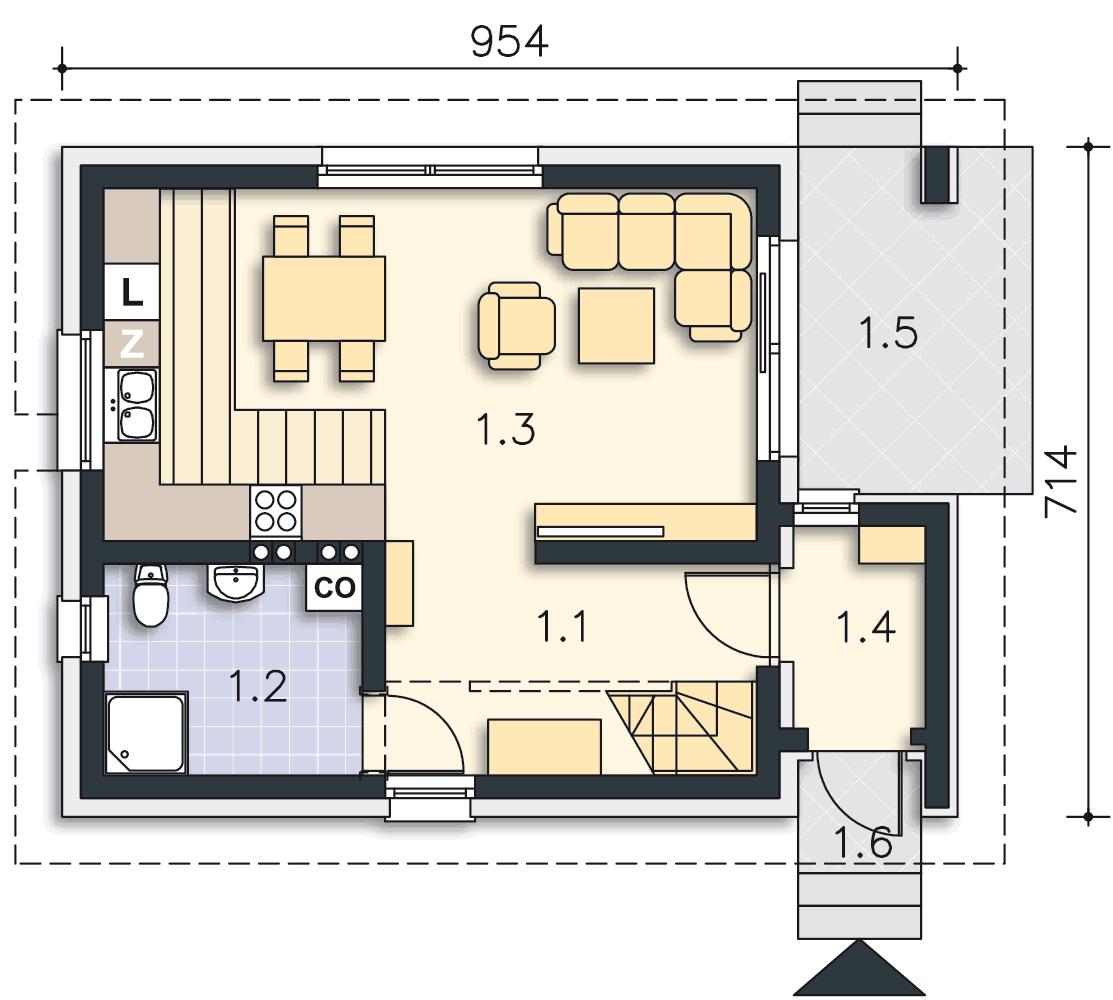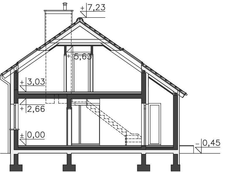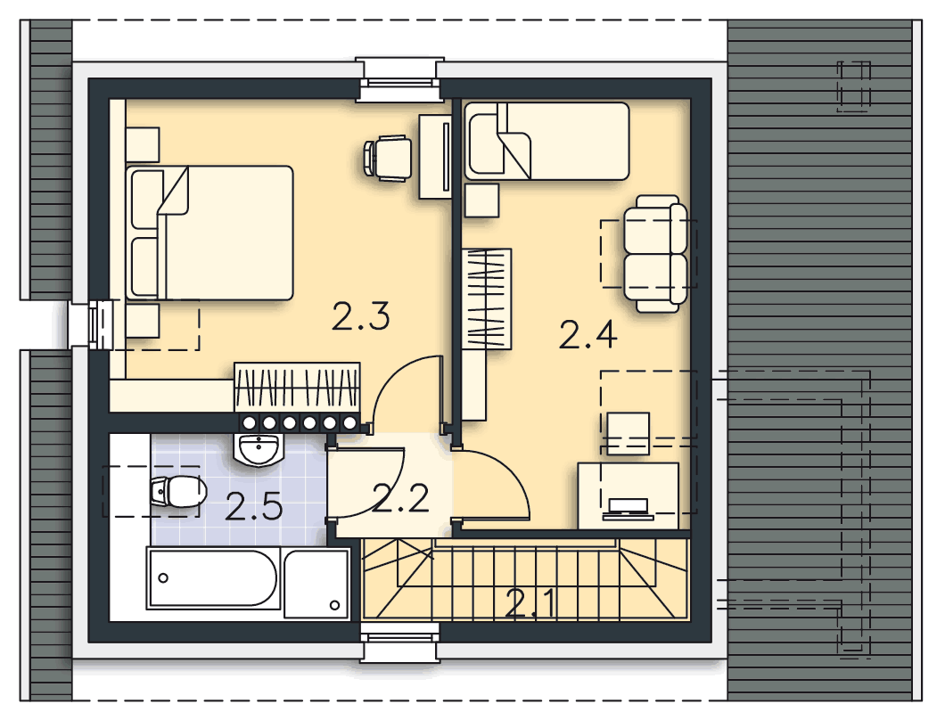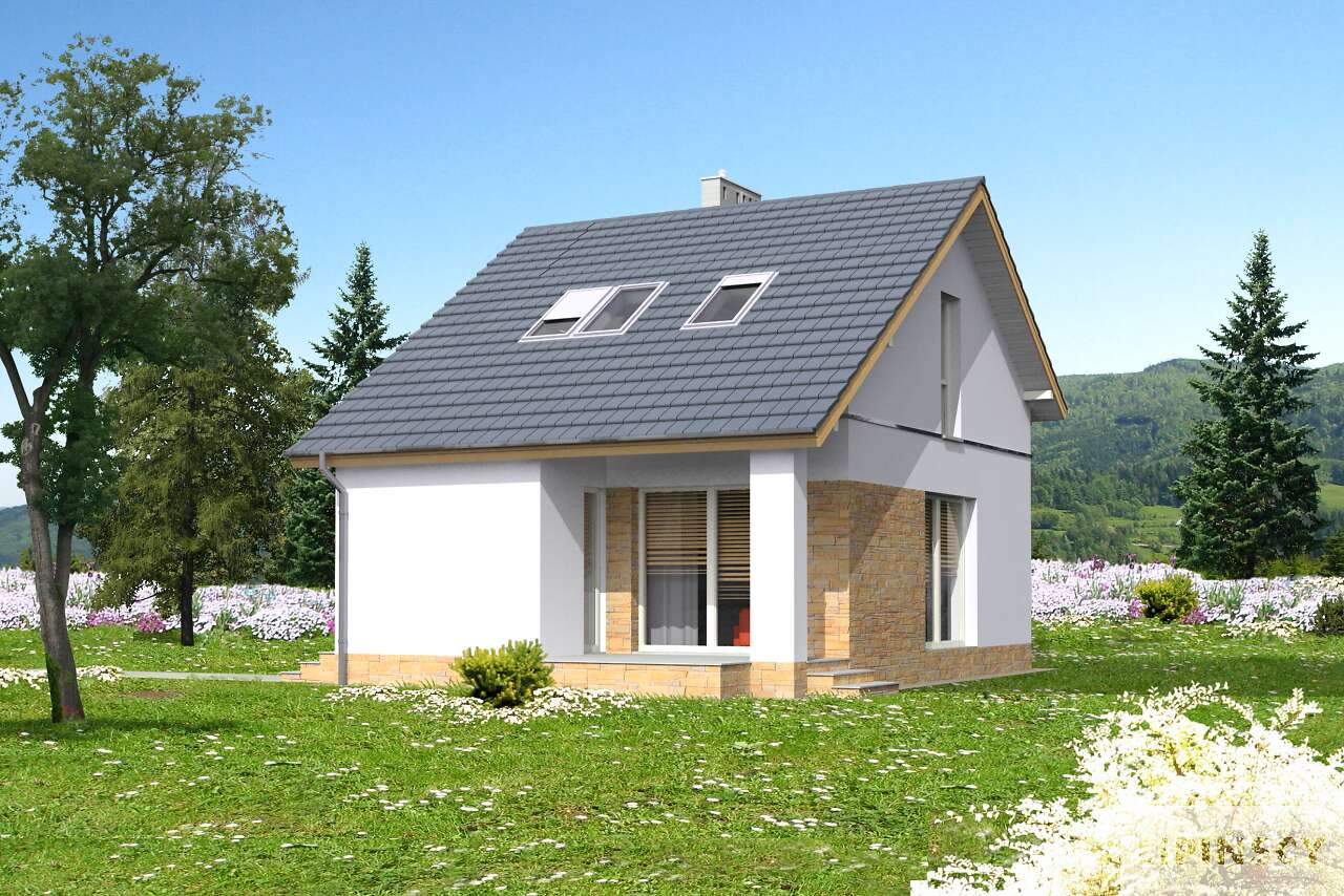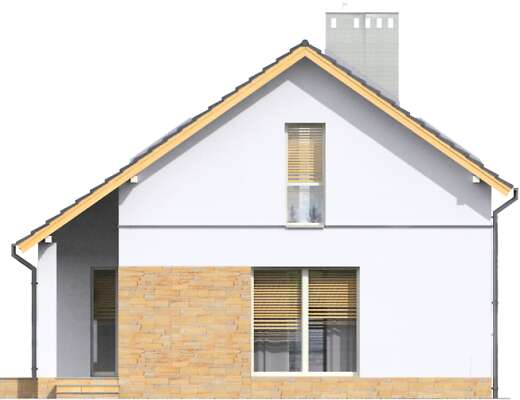 Stamford to projekt niewielkiego, uroczego domu z użytkowym poddaszem, idealnego na wąską działkę. Może zaciekawić inwestorów szukających alternatywy dla mieszkania lub domu dla małej rodziny. Na parterze znajduje się salon z otwartą kuchnią, łazienka oraz wydzielone schody na poddasze, gdzie zaplanowano dwie sypialnie oraz łazienkę z wanną. Plan domu na bazie kwadratu gwarantuje prosty i funkcjonalny podział powierzchni oraz jej maksymalne wykorzystanie. Prosta bryła i dwuspadowy dach gwarantują niewysokie koszty budowy.