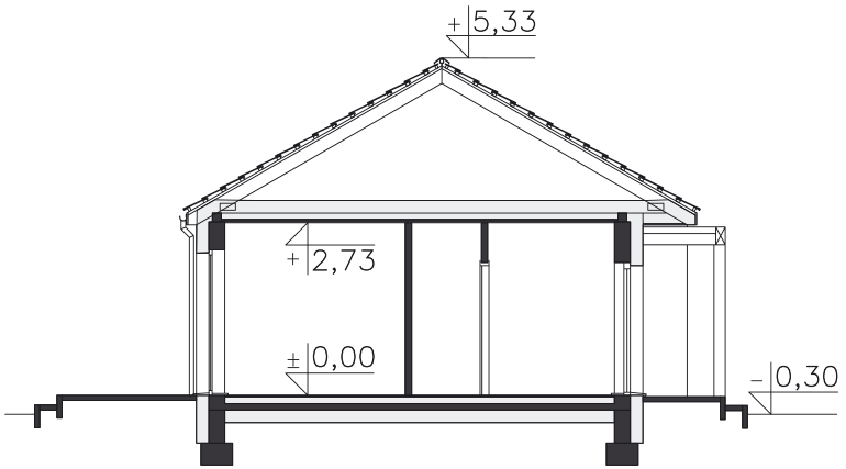 Dach - wiązary prefabrykowane, pokrycie: dachówka ceramiczna