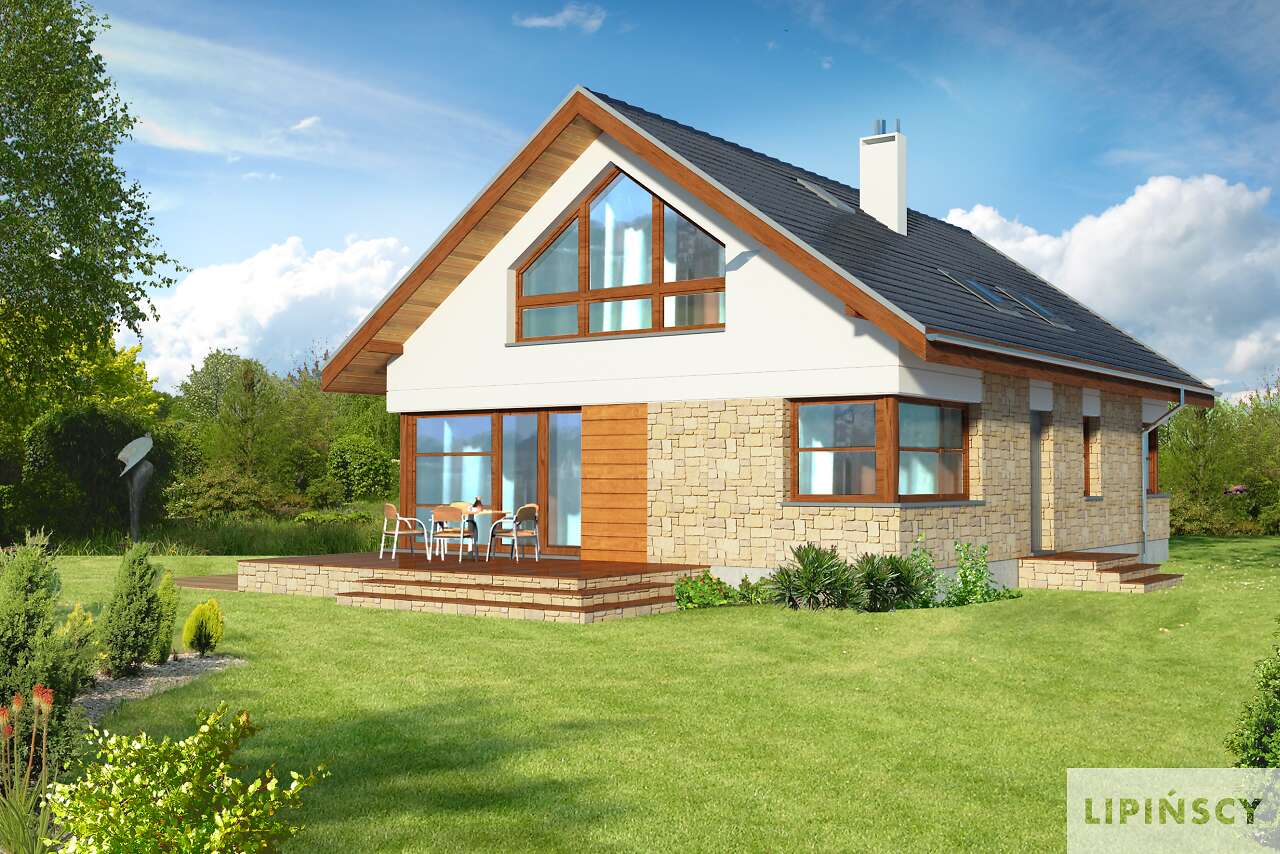 Świetny, nowoczesny projekt domu o bardzo proporcjonalnej bryle i ładnym wykończeniu, nadający się na działki z wjazdem od południa. Jest to energooszczędna wersja domu Tivoli, w którym przestawiliśmy umiejscowienie schodów. Uzyskaliśmy powiększenie salonu i bardzo wygodną strefę wejściową. Na parterze znajduje się duża sypialnia, która dzięki sąsiedztwu dużej łazienki może być da rodziców, a poddasze może być wtedy przeznaczone dla dzieci. Układ pomieszczeń na poddaszu można dostosować do własnych potrzeb, wykorzystując dodatkowe pomieszczenia na pralnię, garderoby, lub włączyć do powierzchni pokoi.