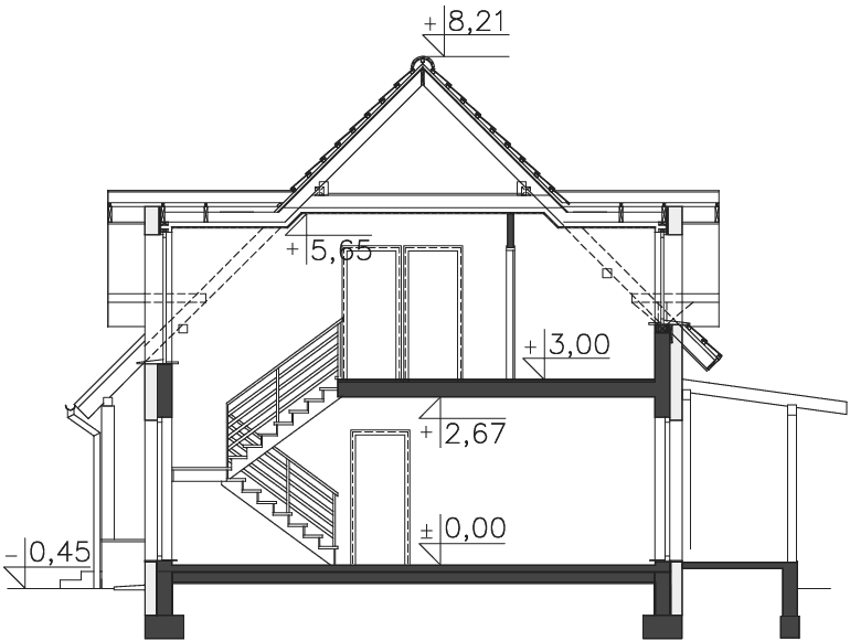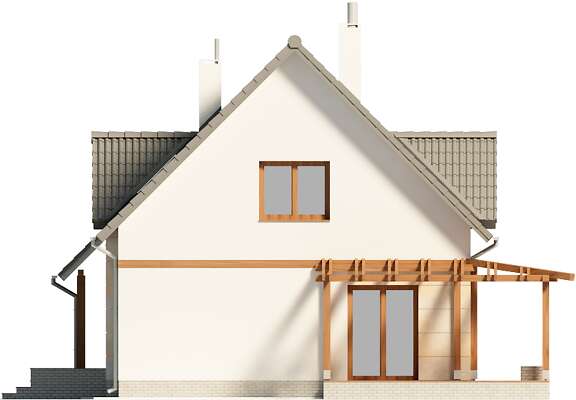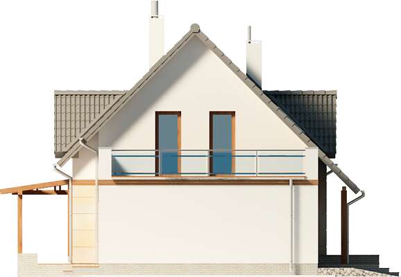 koszmarny pomysł z klatką schodową widoczną w centralnym frontowym oknie! kto umyje takie nieotwierane okno! Z podnośnika? Główne wejście do budynku wciśnięte z boku, a najbardziej widoczny i reprezentacyjny fragment domu ma koszmarną kllatkę schodową. Dlaczego dach jest niesymetryczny tylko wygryziony z jednej strony? Wygląda to jakby inwestorowi zabrakło dachówki.