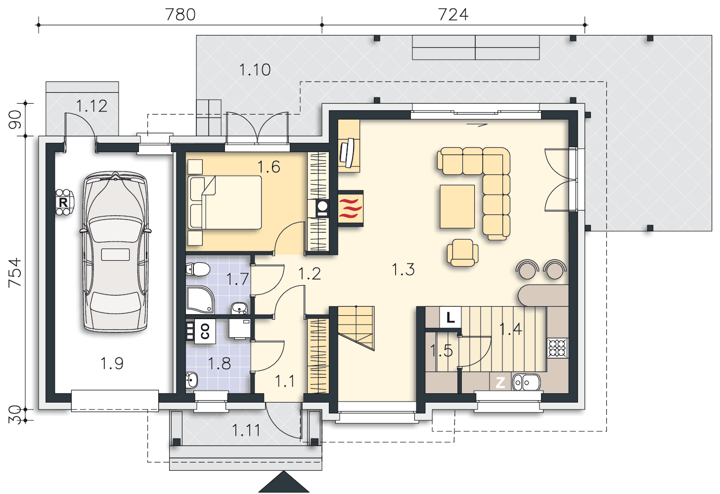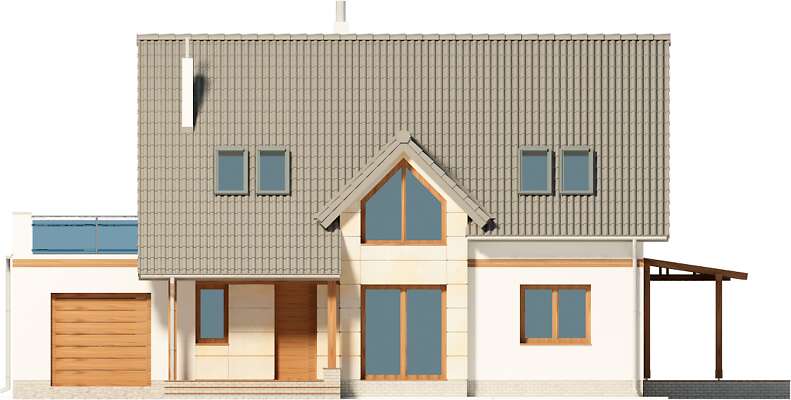 Projekt Tokio III, w odróżnieniu od Tokio, to wersja dla tych, którzy posiadają działkę z wjazdem od północy. Przestawiliśmy część wejściową z garażem, a pozostałe elementy są bez zmian. Jakby nie patrzeć, ten projekt wyróżnia się spośród innych niezależnie od wersji. Posiada to trudne do określenia „coś”, które może kryje się w prostocie bryły urozmaiconej ładnym, nowoczesnym detalem, a może w proporcjach. Niewątpliwie jednak połączona została tu ładna bryła z doskonałym układem funkcjonalnym, pozwalającym na stworzenie naprawdę ładnych wnętrz.