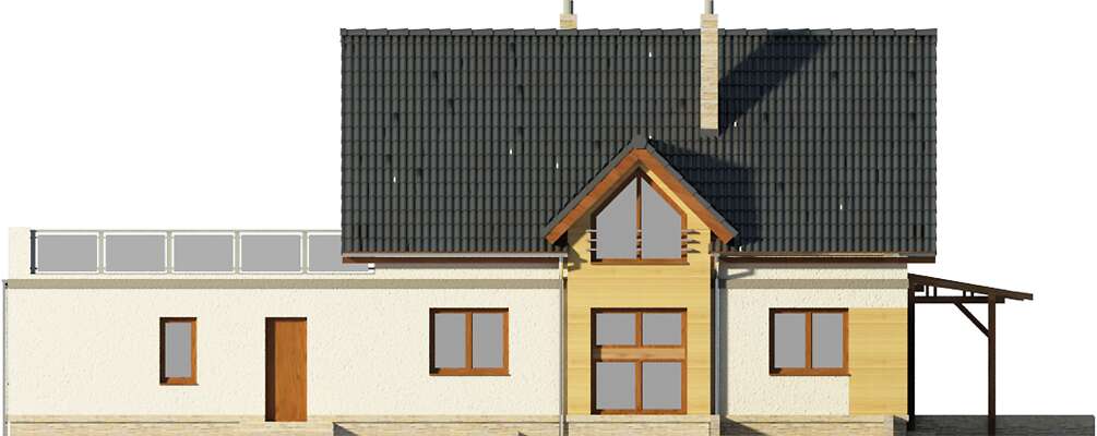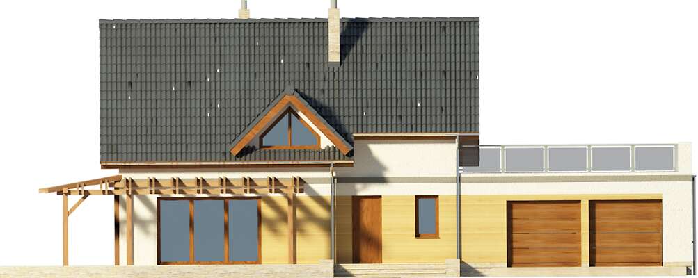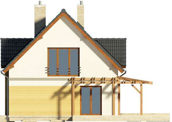 Kolejna odsłona popularnego projektu Tokio, tym razem z garażem na dwa auta i podpiwniczeniem. Parter to Duzy salon z otwartą na niego kuchnią, dodatkowa sypialnia i łazienka. Na poddaszu zaplanowano dwie duże sypialnie i komfortową łazienkę. Z jednej z sypialni można wyjść na taras, usytuowany na dachu garażu. Do garażu z wydzielonym zapleczem sanitarnym, prowadzi także przejście z domu. Mimo kilku zmian, projekt Tokio V zachował swój charakterystyczny wygląd, a elementy drewniane i metalowe podkreślają nowoczesny rys budynku.