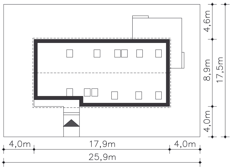 | Min. szerokość działki | 26,50m x 14,60m |