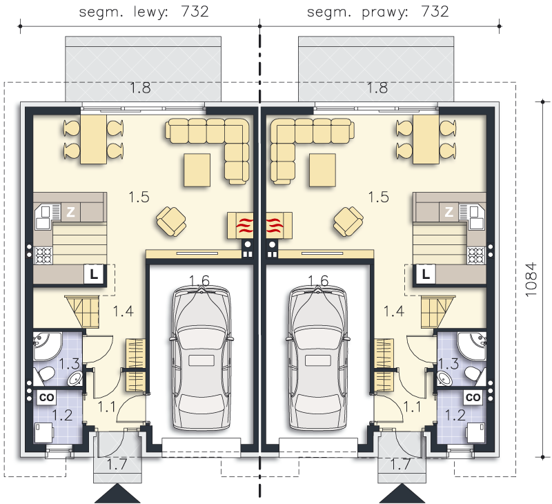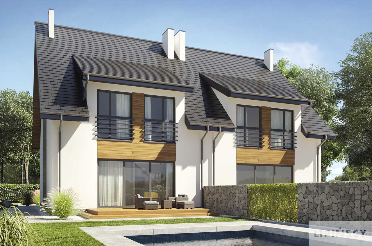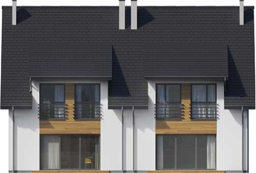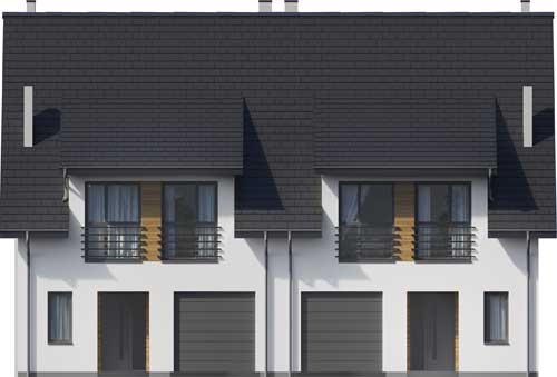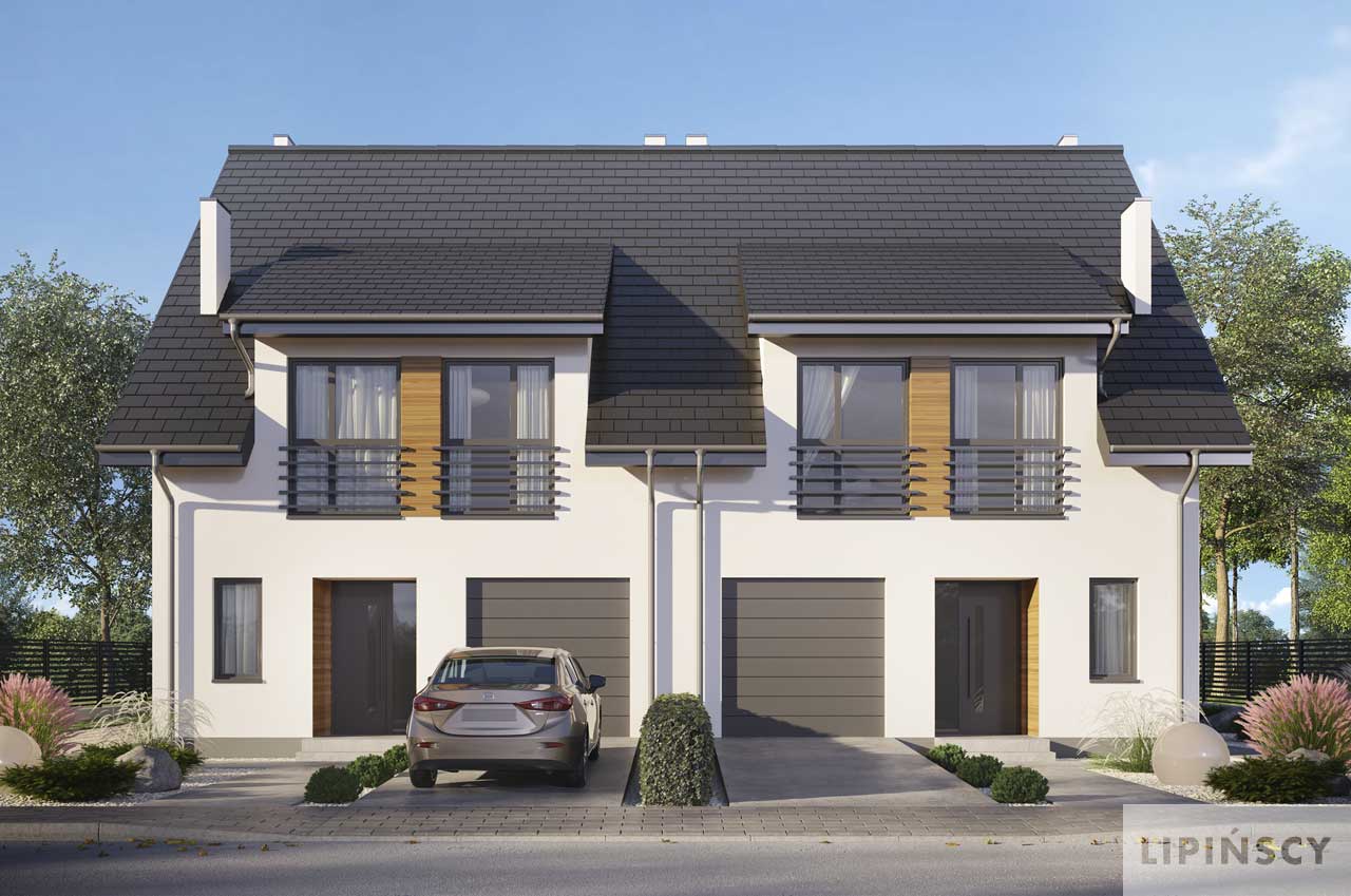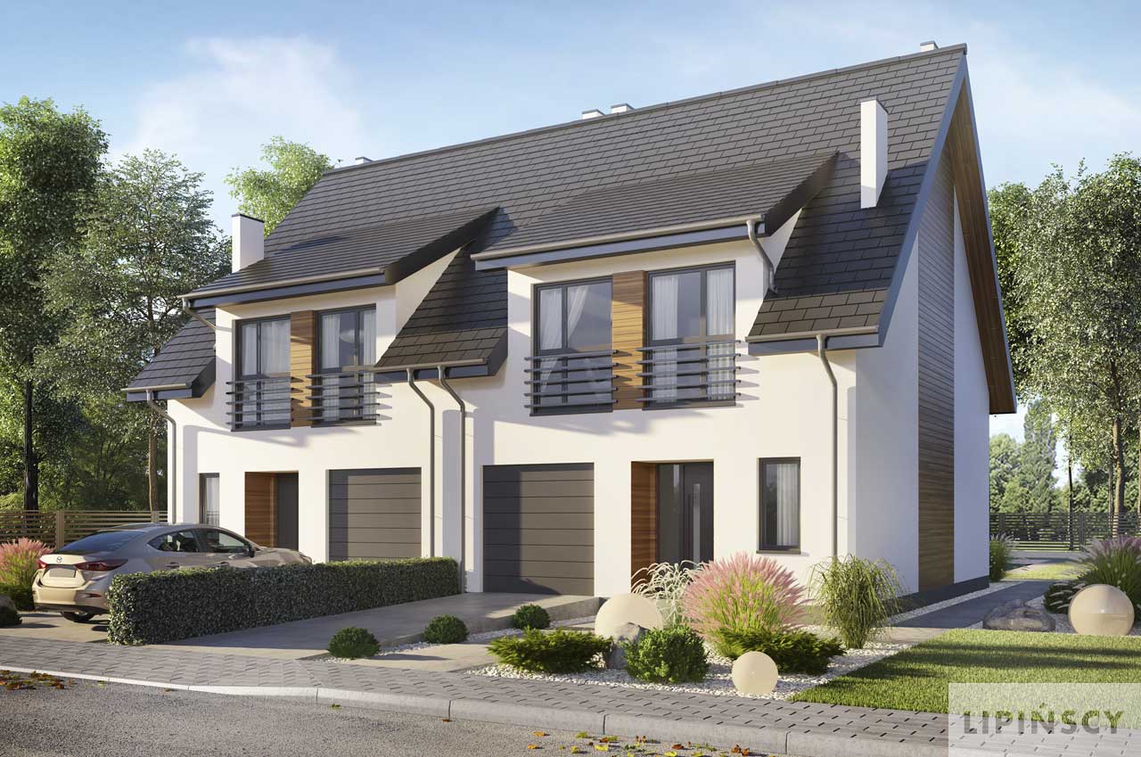 Jest to projekt ślicznego, małego bliźniaka. Dom ma lekką formę i doskonale rozplanowane wnętrze. Prosta konstrukcja, niewielka powierzchnia, efektowny wygląd sprawia, że jest to idealny projekt dla Twojej inwestycji. Bezkonkurencyjny bliźniak do założeń deweloperskich jak również dla osób chcących niedrogo wybudować dom dwurodzinny. Na parterze znajduje się salon z aneksem kuchennym i częścią jadalnianą, łazienka. Z wiatrołapu jest przejście do garażu i pomieszczenia co. Poddasze to dwa pokoje dla dzieci, duża łazienka oraz wygodna sypialnia dla rodziców. Ten pokój można podzielić na dwa pomieszczenia. W projekcie przewidziano ogrzewanie kotłem na gaz. Możliwa jest zmiana ogrzewania na pompę ciepła.