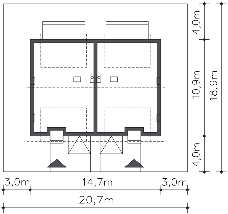 | Min. szerokość działki | 20,70m x 18,90m |
