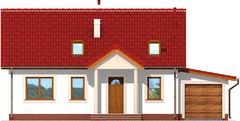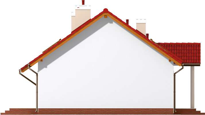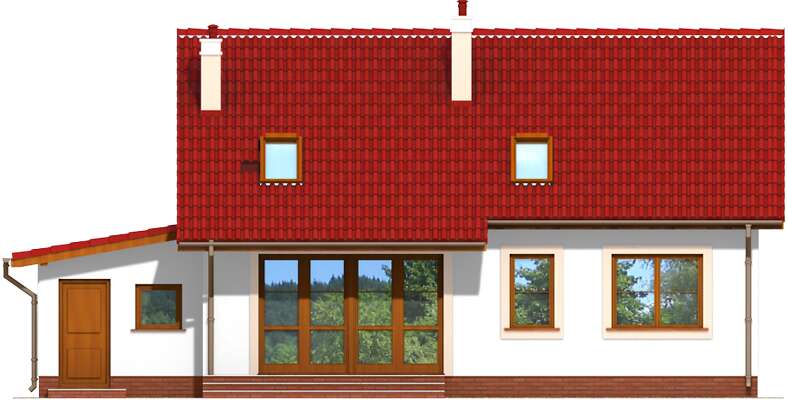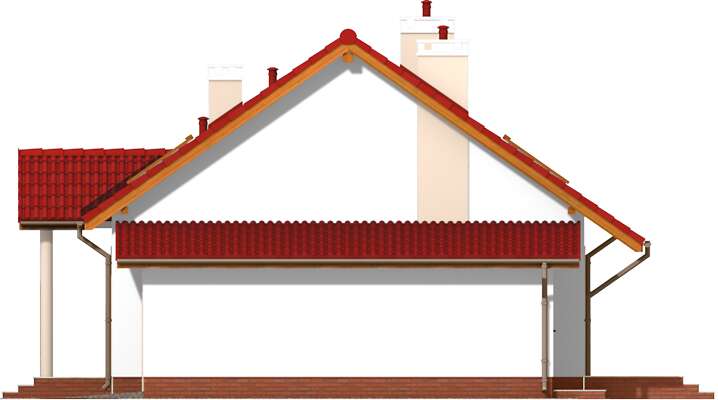 Ten funkcjonalny, tani w budowie domek, to idealne miejsce do mieszkania dla kogoś, kto nie potrzebuje zbędnej powierzchni i dużej przestrzeni, za to ceni sobie wygodę dostępności wszystkich pomieszczeń. Jeden pokój to wygodna sypialnia z pojemną szafą, a drugi nadaje się na miejsce do pracy, ewentualnie czasem wykorzystywany, jako pokój dla gości. Salonik jest kameralny i przytulny, a dzięki kominkowi także ciepły. Natomiast duże wyjście na zadaszony taras powoduje, że latem ten pokój będzie się wydawał większy. W domu przewidzieliśmy także osobną pralnię, a także kotłownię za garażem.