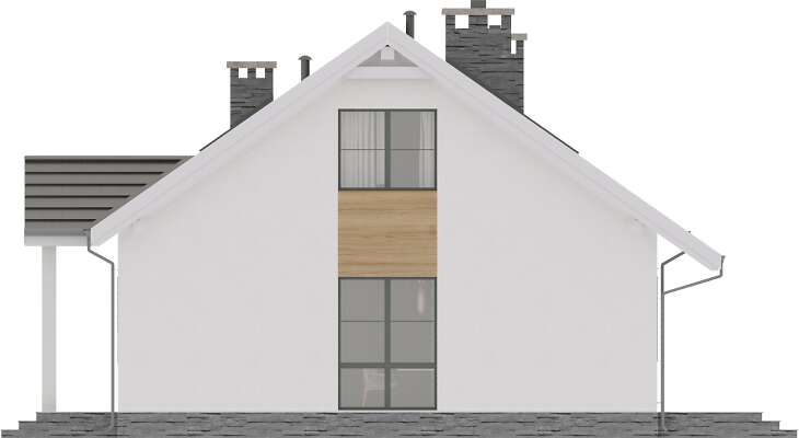 Tuluza VII to kolejna wersja projektu, który cieszy się niesłabnącą popularnością. W tej odsłonie przenieśliśmy garaż i kotłownię na drugą stronę budynku oraz doświetliliśmy salon pięknym, dużym oknem, przez co wnętrze jest pełne naturalnego światła. Oprócz zamkniętej kuchni, którą w razie potrzeby można otworzyć na salon, na parterze znajduje się spiżarnia, toaleta, łazienka oraz salon, a do indywidualnego zagospodarowania pozostaje również strych, który można zaaranżować na wiele sposobów. Wybuduj Tuluzę VII jeśli szukasz domu prostego, niedrogiego w budowie, funkcjonalnego, o ładnej bryle i niewielkim metrażu, doskonale wpisującego się w klimat podmiejskich lub wiejskich działek. W projekcie przewidziano ogrzewanie kotłem na gaz. Możliwa jest zmiana ogrzewania na pompę ciepła.