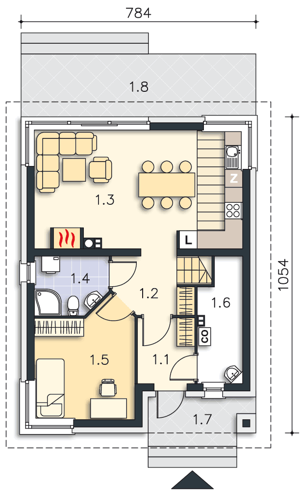 | 1.6 | Kotłownia | 4,17m2 (5,67m2) |