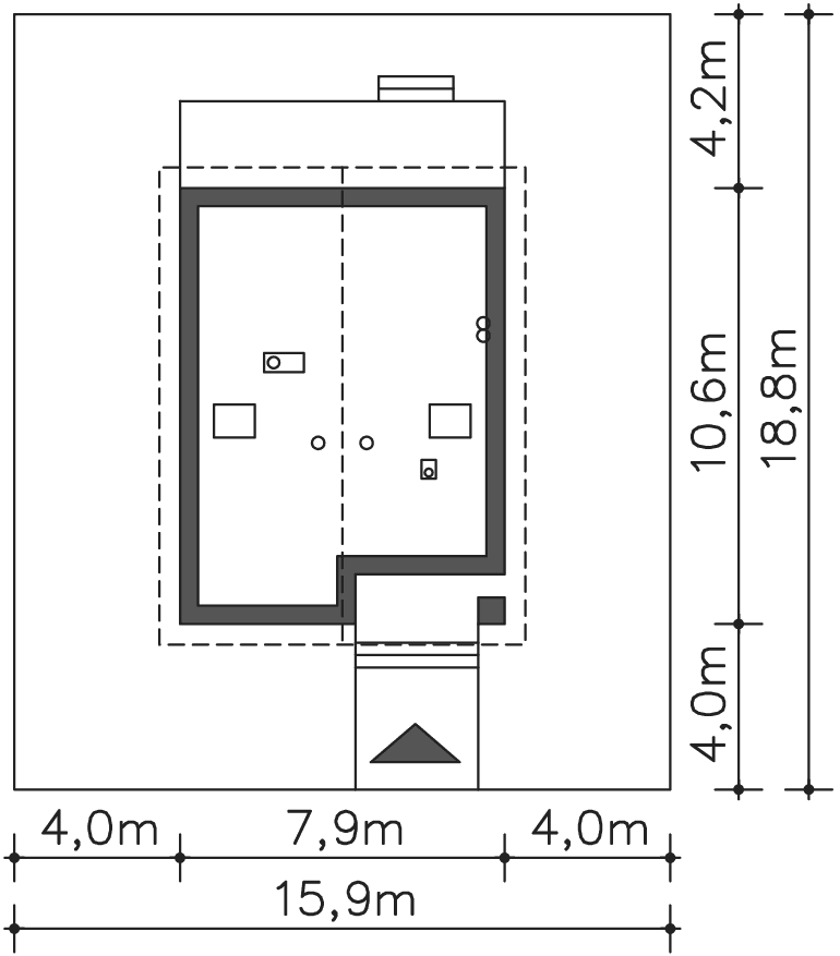 | Min. szerokość działki | 15,90m x 18,90m |