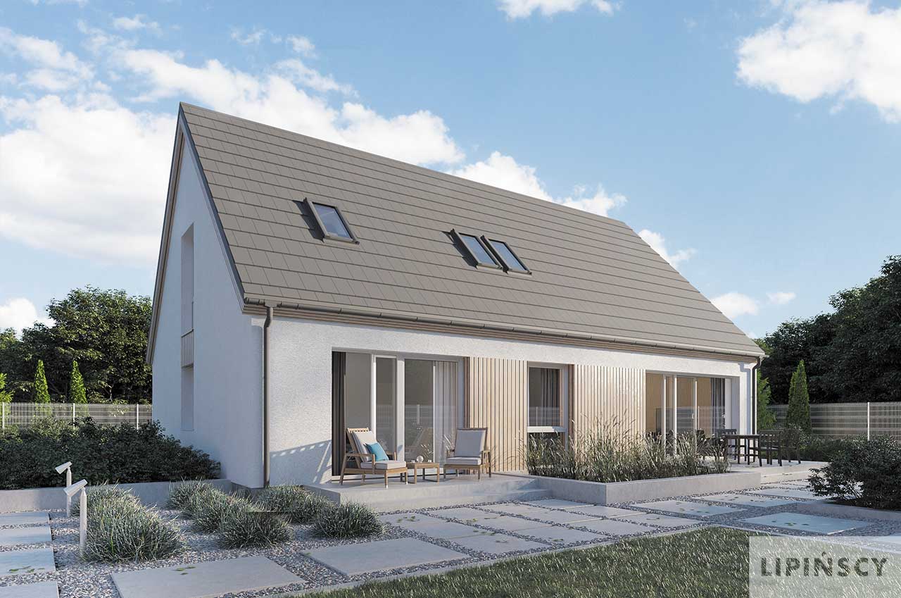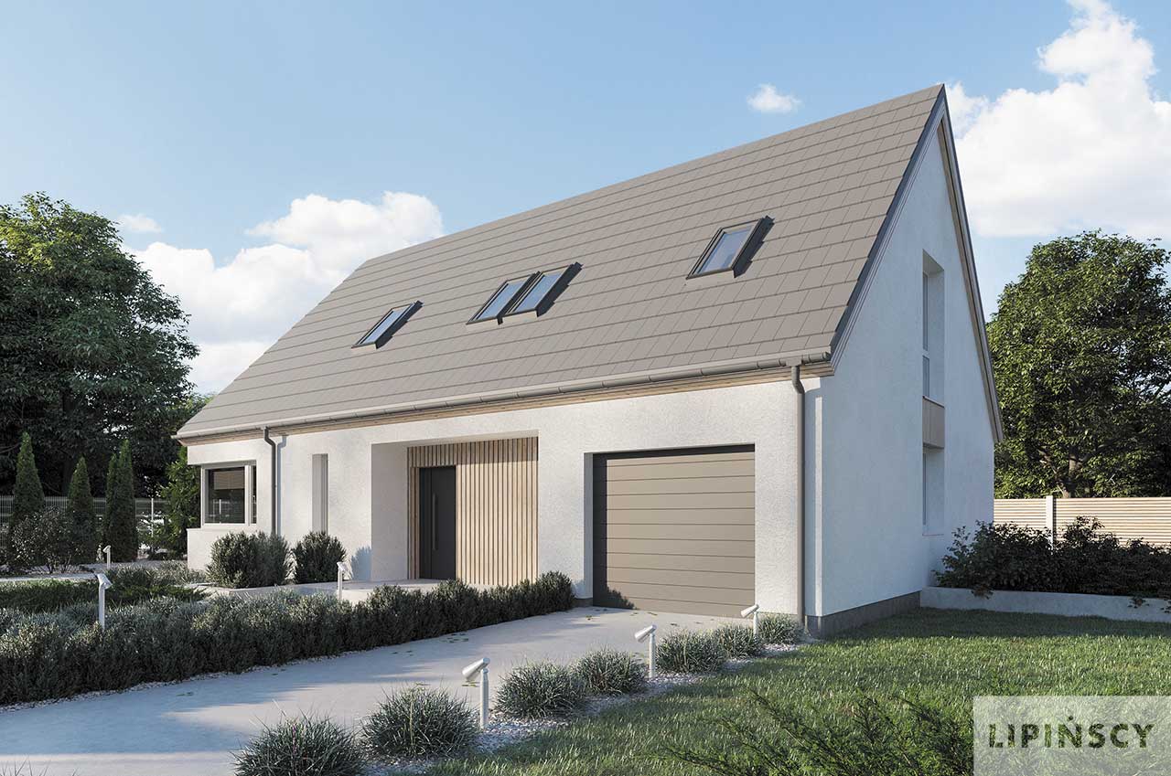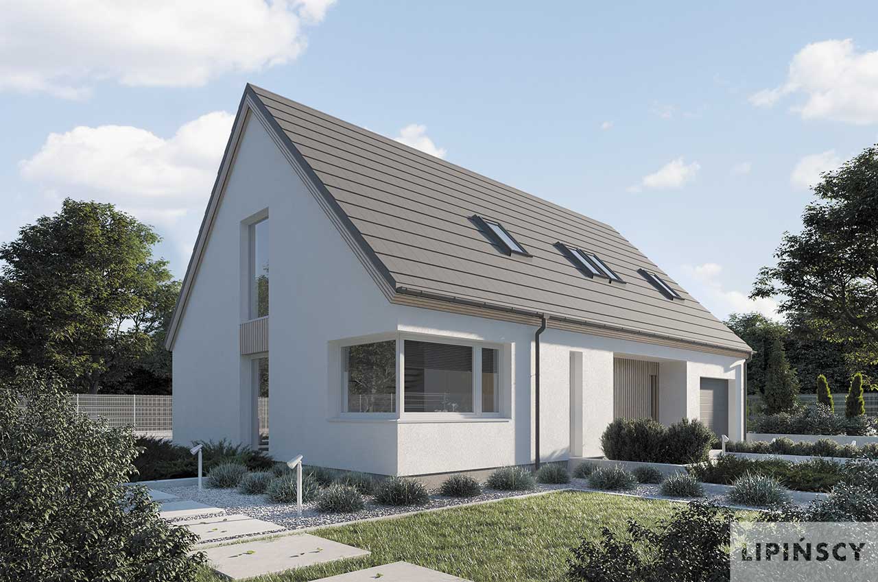 Projekt Valbella to parterowy dom z poddaszem użytkowym na antresoli i dwuspadowym dachem. Oferuje efektowną przestrzeń dzienną z sufitem salonu podwyższonym do dachu i otwartą na salon kuchnią z przejściem do pomieszczenia gospodarczego. Strefa prywatna została podzielona na dwie sypialnie z łazienką na parterze i dwie na poddaszu również z łazienką, a także z otwartą przestrzenią wypoczynkową lub do pracy na antresoli. Jednostanowiskowy garaż jest wbudowany w bryłę budynku pod wspólnym dachem. W projekcie przewidziano ogrzewanie pompą ciepła.