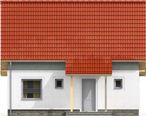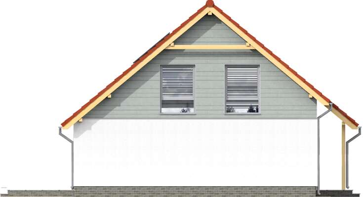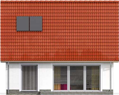 Niewielki dom z użytkowym poddaszem, zaprojektowany w technologii pasywnej. Prosta bryła kryje funkcjonalnie zaplanowane wnętrze. Na parterze znajduje się ustawna, oddzielona od salonu kuchnia, obok niej niezbędna spiżarnia, duży pokój dzienny z efektownym, przeszklonym wyjściem na taras, łazienka, pomieszczenie gospodarcze oraz dodatkowy pokój – gabinet. Poddasze zajmują trzy wygodne sypialnie, rodzinna łazienka i niewielki schowek. Dzięki zwartej, przekrytej dwuspadowym dachem bryle przy budowie można uniknąć wielu dodatkowych kosztów przy budowie, a eksploatacja domu pasywnego znacząco wpływa na obniżenie rachunków za energię. W projekcie przewidziano ogrzewanie pompą ciepła.