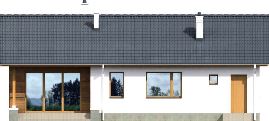 dziwne ale na rzutach w salonie widać 2 okna a na widokach 1 i to jeszcze małe /widok od frontu i prawy szczyt/
