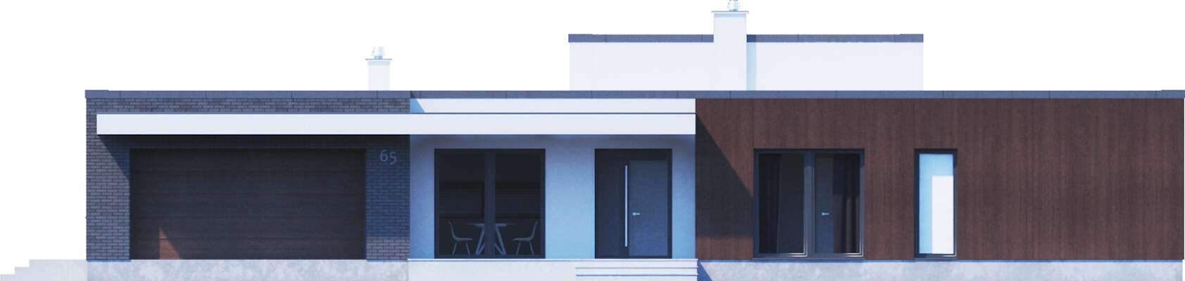 Vitrac to parterowy dom, zaprojektowany w nowoczesnym stylu, z płaskim dachem i dużymi przeszkleniami, przewidziany w standardzie energooszczędnym. Ciekawie zaaranżowane wejście prowadzi do wiatrołapu, gdzie zmieściła się szafa na odzież wierzchnią, a z wiatrołapu do części wspólnej domu – dużego, wygodnego salonu. Obok niego znajduje się duża, funkcjonalna kuchnia z wyspą a obok niej jadalnia. Do dyspozycji mieszkańców jest także gabinet, który może być także pokojem gościnnym lub dziecięcym oraz wspólna łazienka. Część prywatna domu to duża sypialnia z własną garderobą i łazienką. W bryle domu znajduje się garaż na dwa auta, za którym zaplanowano pomieszczenie gospodarcze (z wejściem także z kuchni) oraz kotłownię z niezależnym wyjściem na zewnątrz.