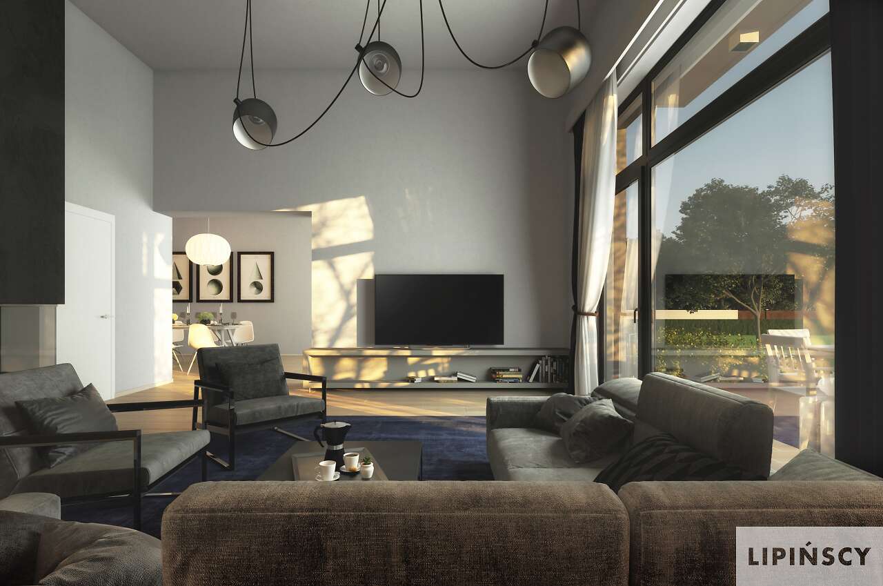 Projekt bardzo ciekawy, szczególnie wysokie pomieszczenie salonu prezentuje się imponująco. Okna też wydają się wyższe niż standardowe, raczej aluminiowe niż pcv? Część okien jest chyba nieotwieralnych. Czy można zastosować drzwi przesuwne do wyjścia na taras? Czy w projekcie podane jest jakiej firmy są okna?