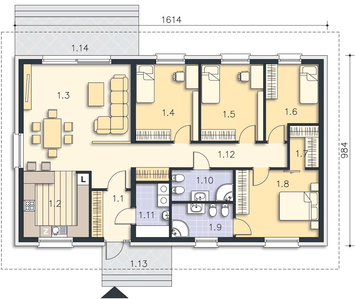 7. Zamienić narożne okno w kuchni na jedno od frontu.