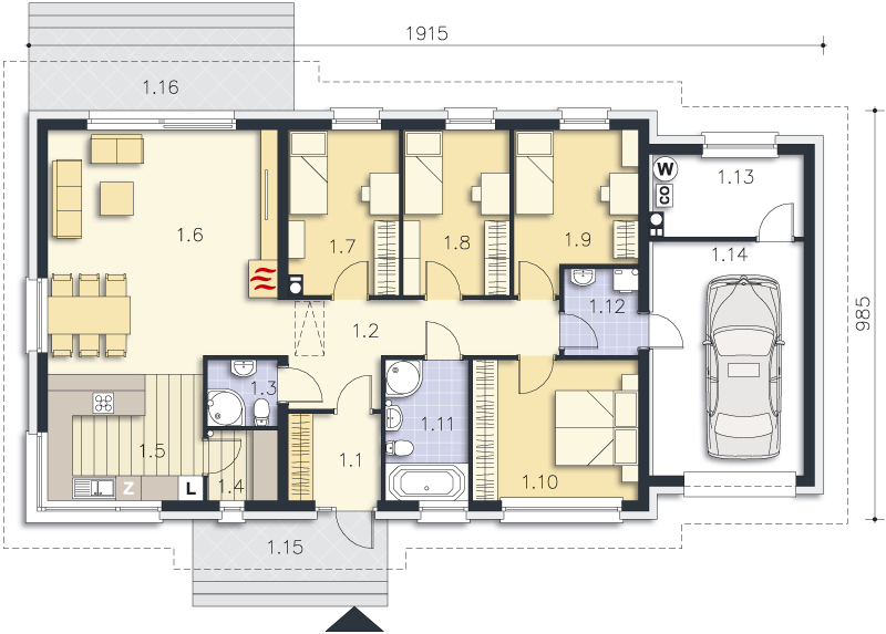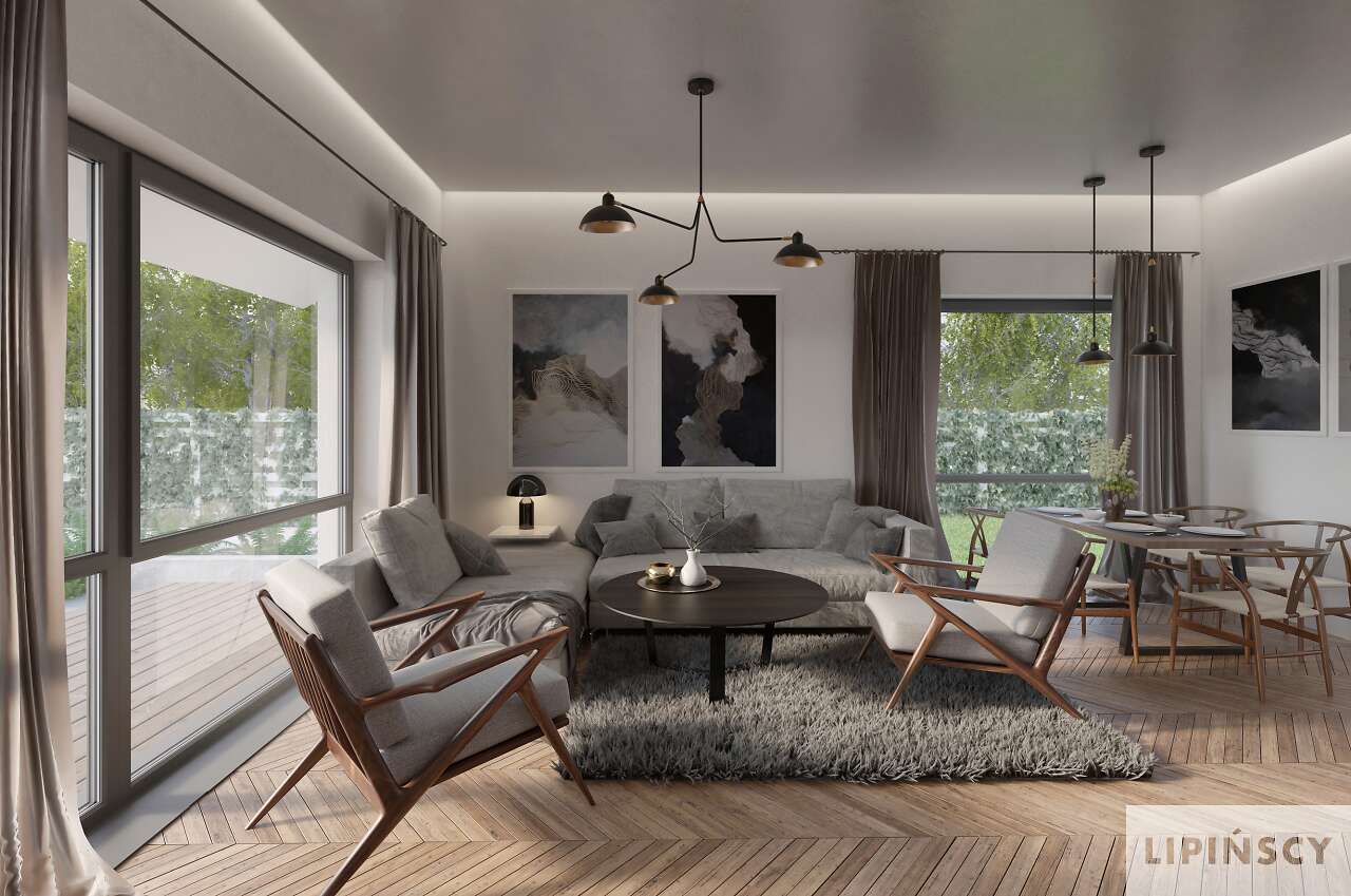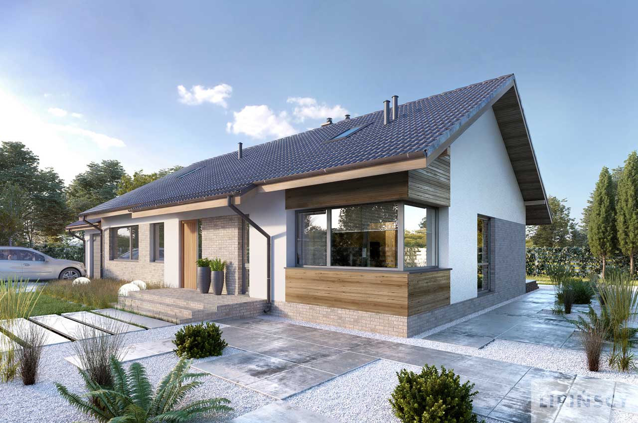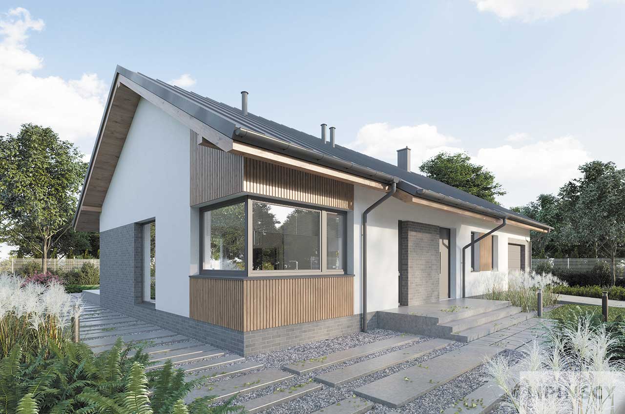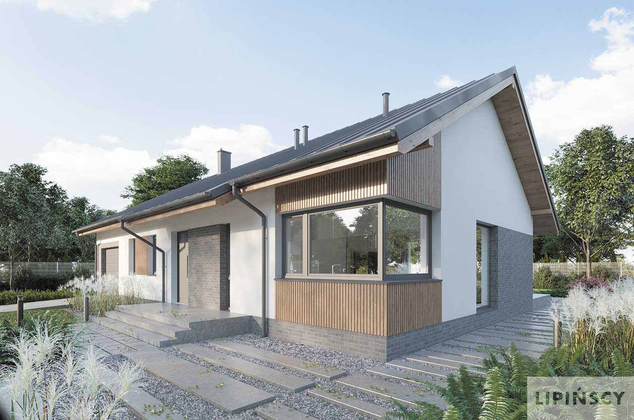 Niestety nie mamy jeszcze takiej wersji. Można doprojektować garaż z kotłownią w ramach adaptacji u architekta lokalnego (wydamy bezpłatną zgodę) lub u nas w biurze (prosimy o kontakt mailowy w celu przygotowania wyceny). Szczegóły w żółtej zakładce "Zmiany w projektach".