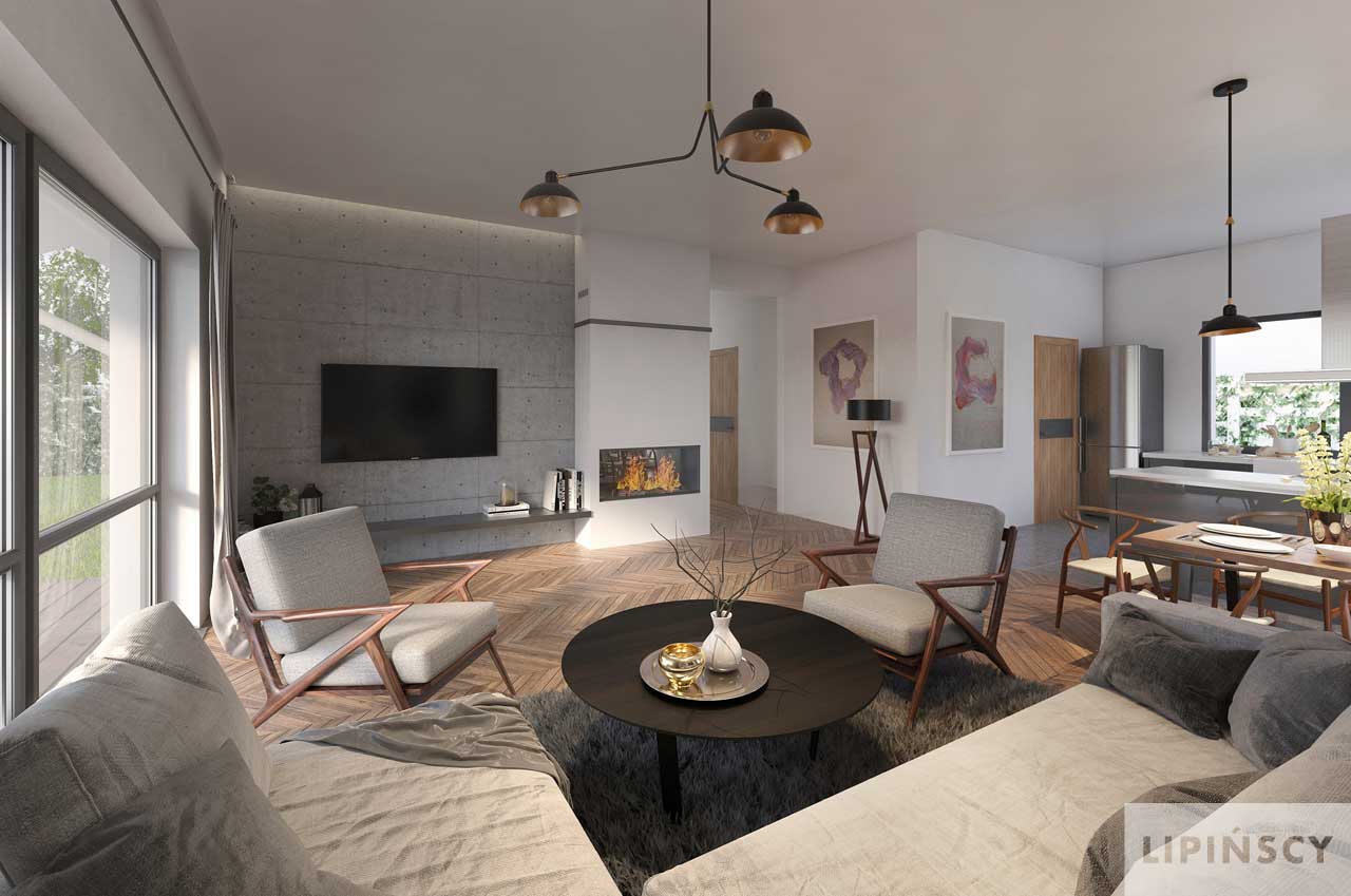 Można doprojektować kominek i ogrzewanie gazowe w ramach adaptacji albo u nas w biurze.