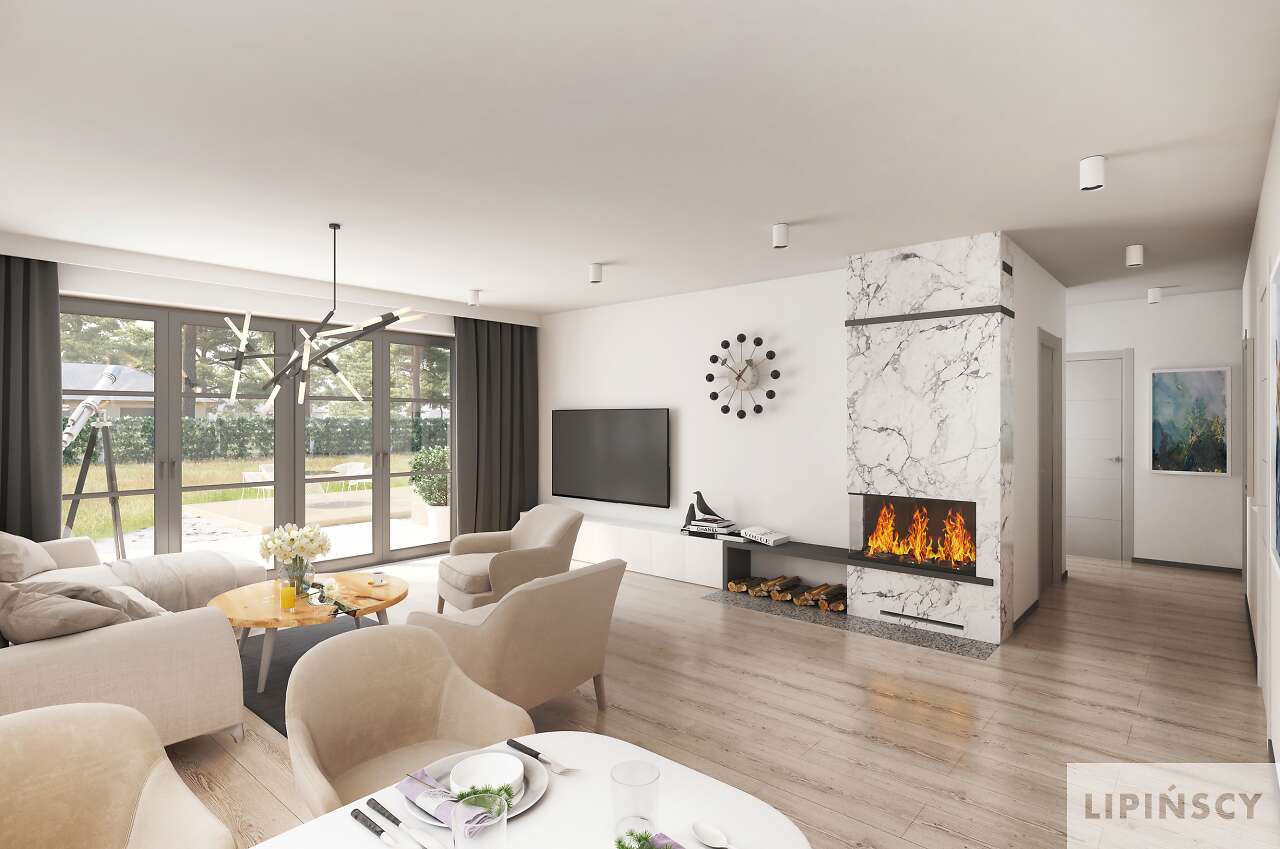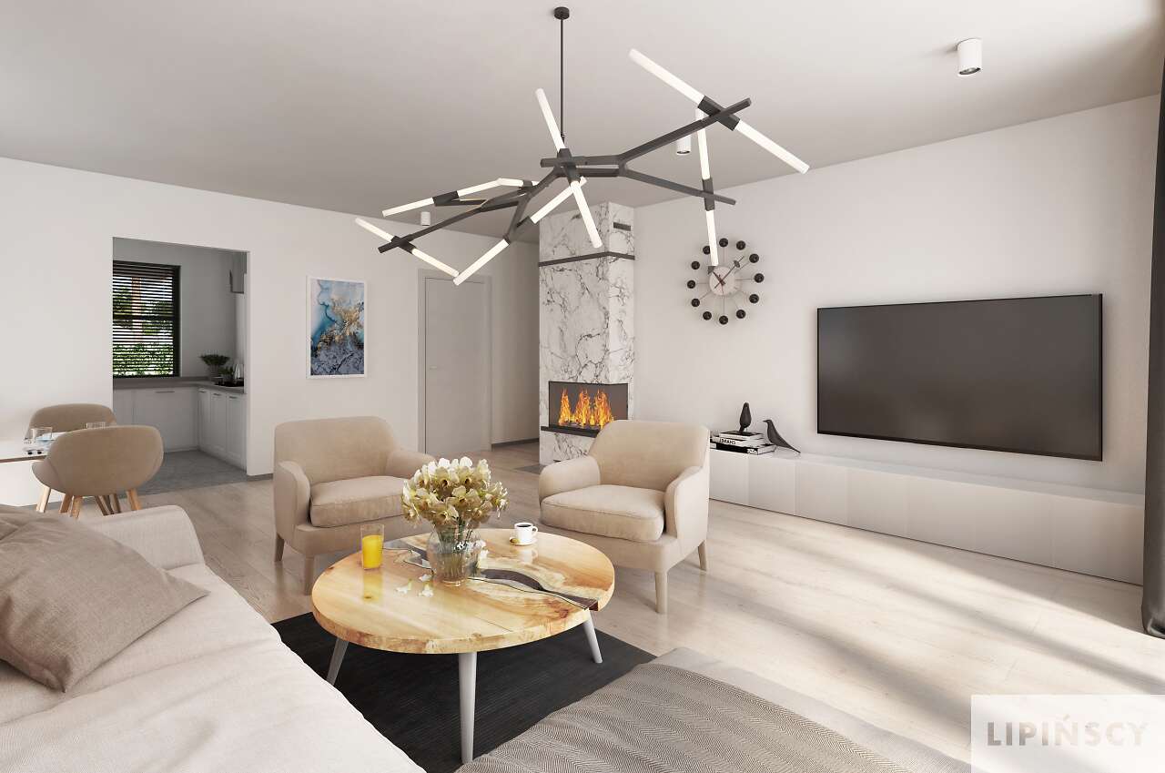 W projekcie właśnie jest przewidziany strop drewniany, który jest jednocześnie elementem więźby dachowej. W domach parterowych polecamy właśnie taki strop, a nie żelbetowy, który jest zdecydowanie droższy.