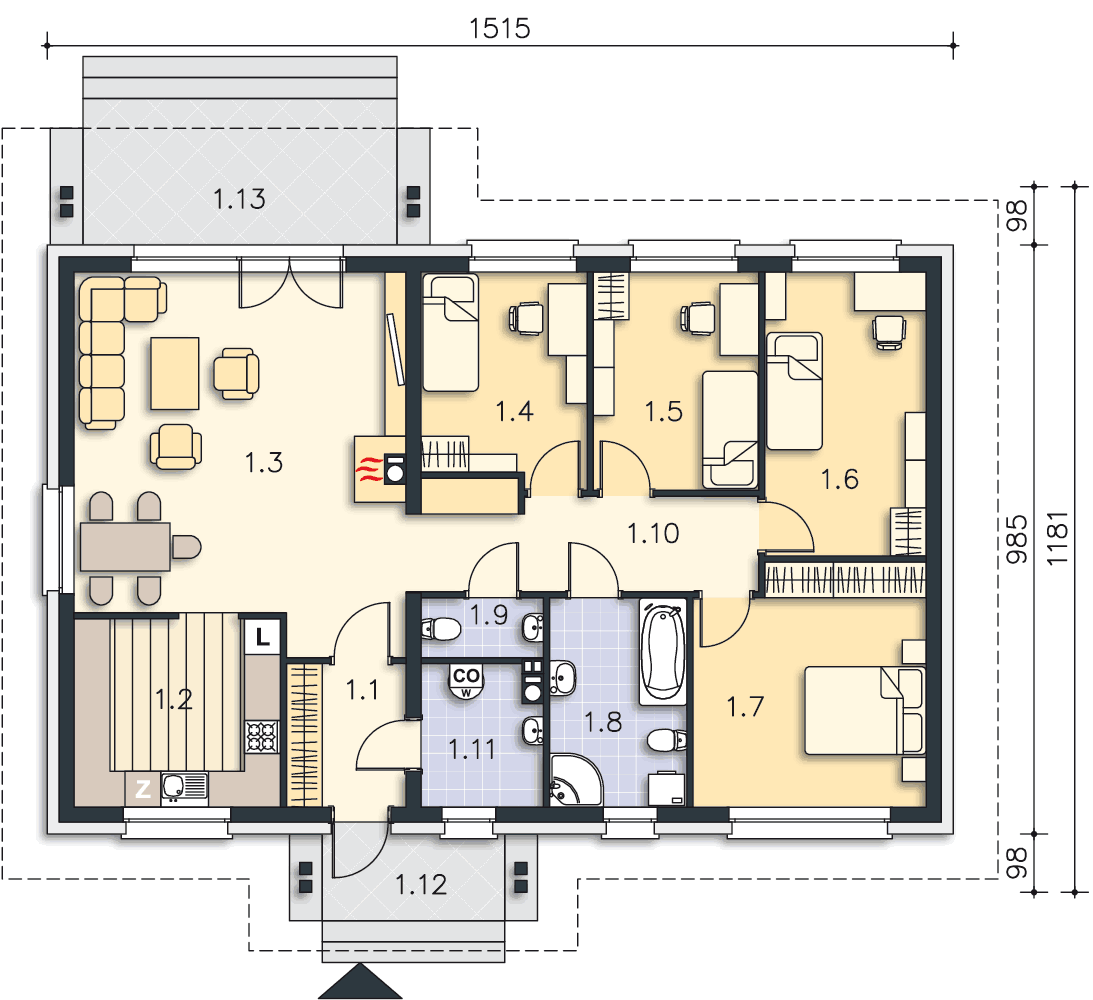 Czy jest możliwość powiększenia powierzchni domu na 13m x 11m , otrzymał bym wtedy idealną powierzchnie kotłowni na paliwo stałe w miejscu łazienki 1.6, a łazienkę przenieść w miejsce 1.8