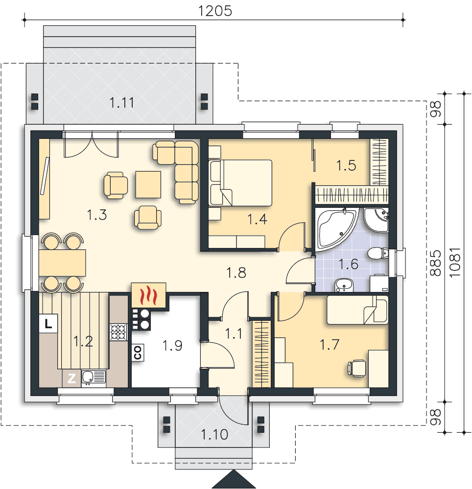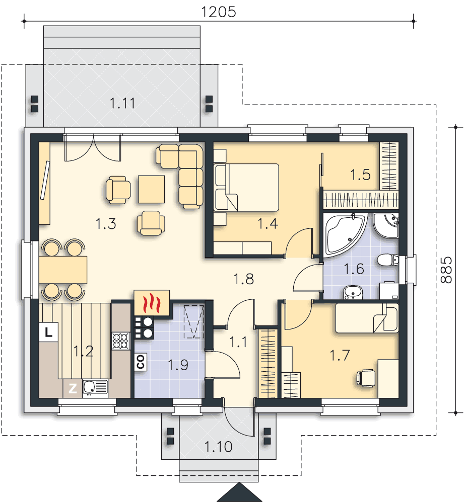 Bardzo dobrze przemyślany projekt.Dwa pytania: 1.Czy można zastosować dach jak w projekcie Tuluza? 2.Potrzebne jest pomieszczenie typu spiżarnia.Czy kominek nie za bardzo nagrzewa pomieszczenie gospodarcze?