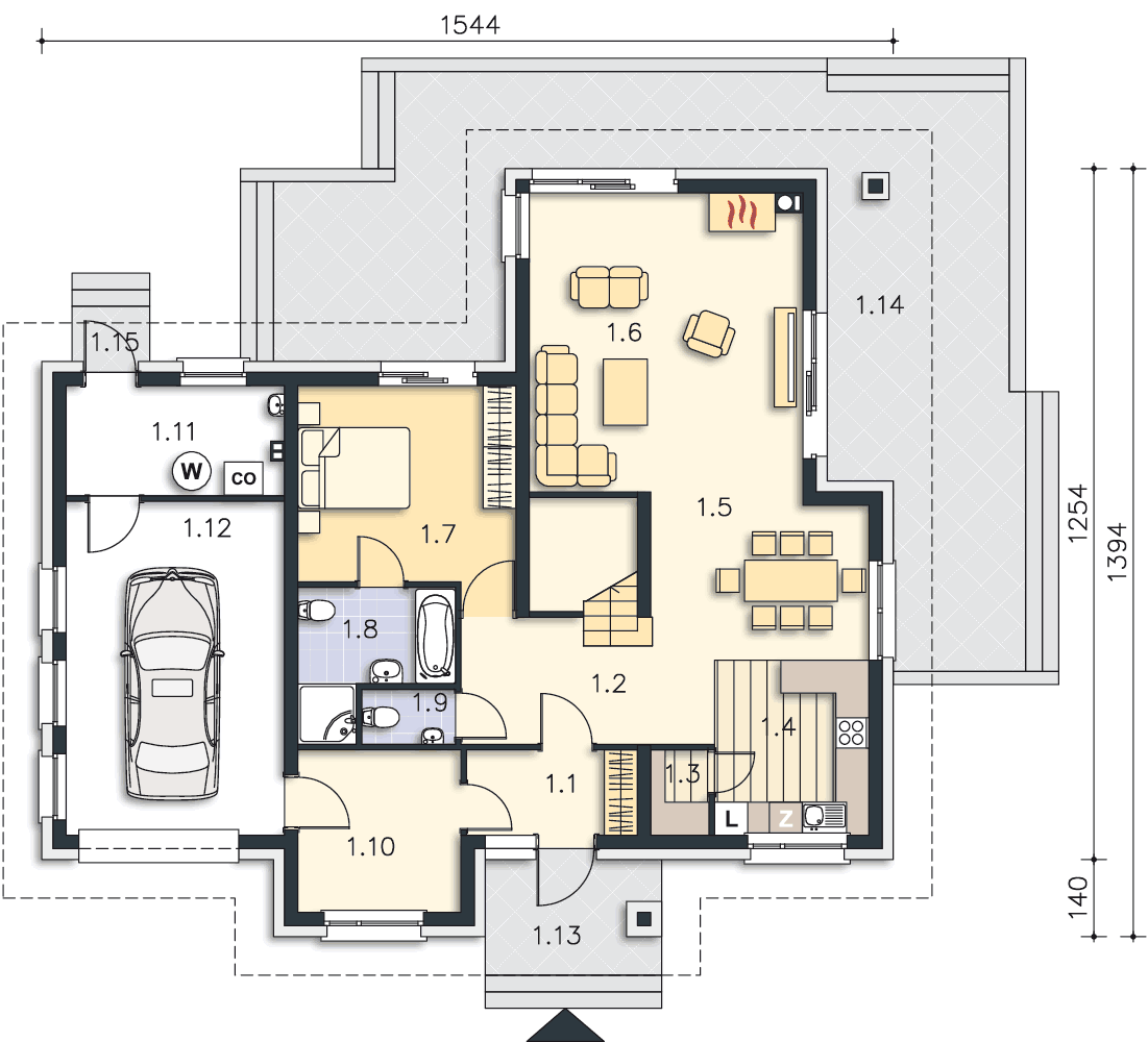 Na działki z wjazdem od południa proponujemy Ajaccio lub projekty z grupy:
