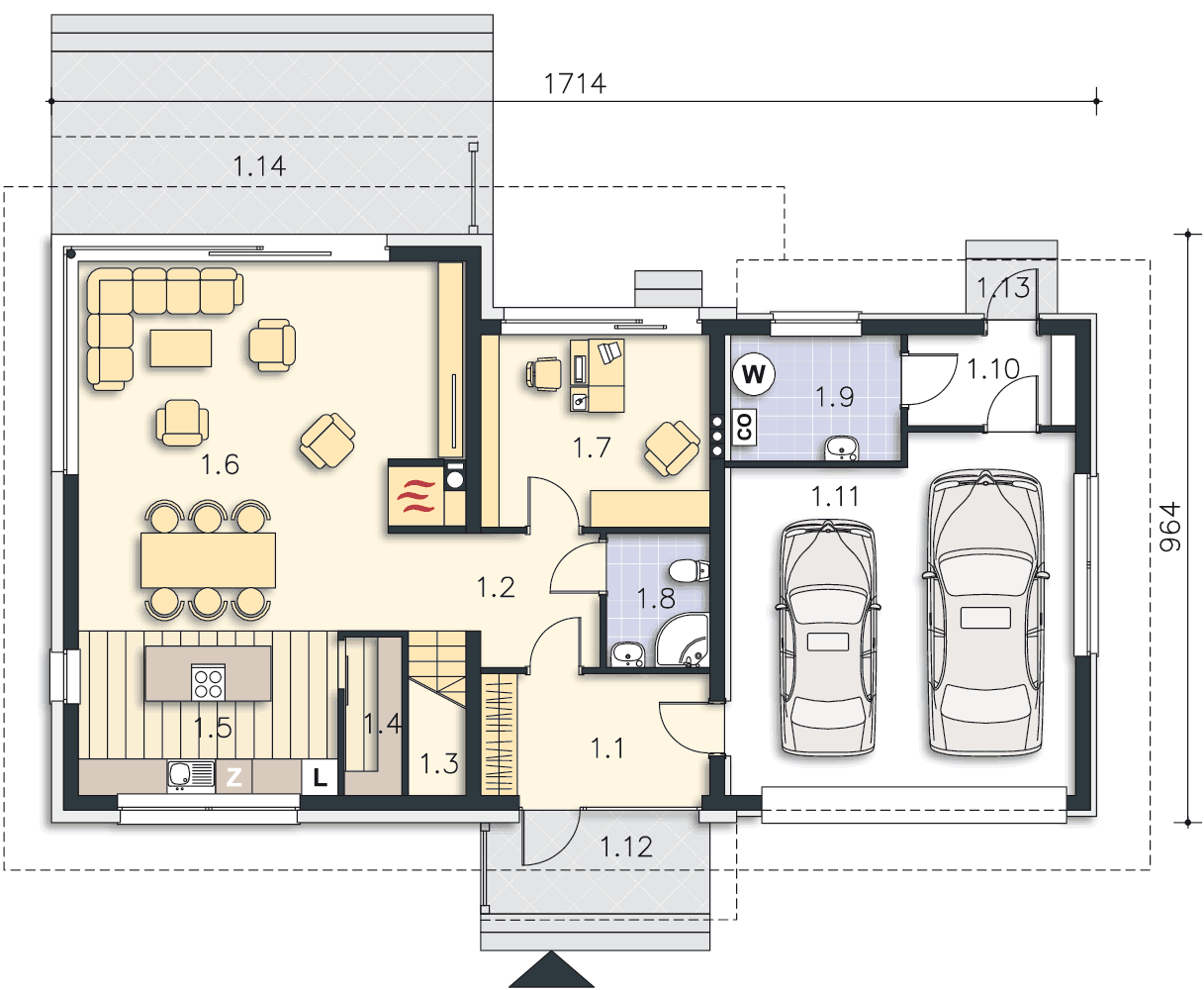 Można zrobić np. kuchnię w miejscu sypialni 1.6 oraz wprowadzić zmiany w garażu.