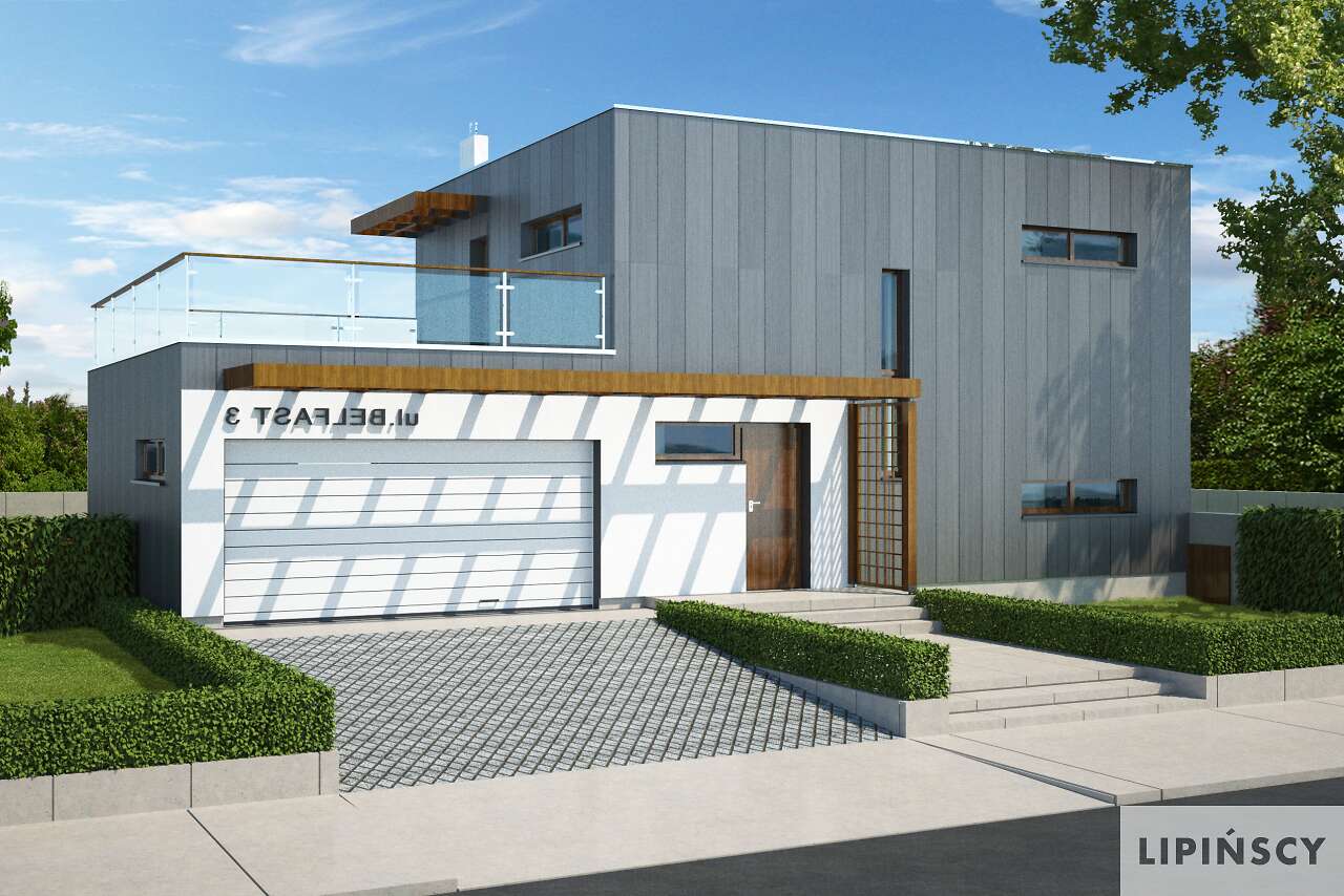 Tak, dom można usytuować krótszym bokiem do drogi. Wówczas garaż trzeba nieco wydłużyć, a pomieszczenie gospodarcze umieścić bliżej wiatrołapu 1.1, podobnie jak w Belfast V. Z powodzeniem zmieści się na działce węższej, niż 20m.