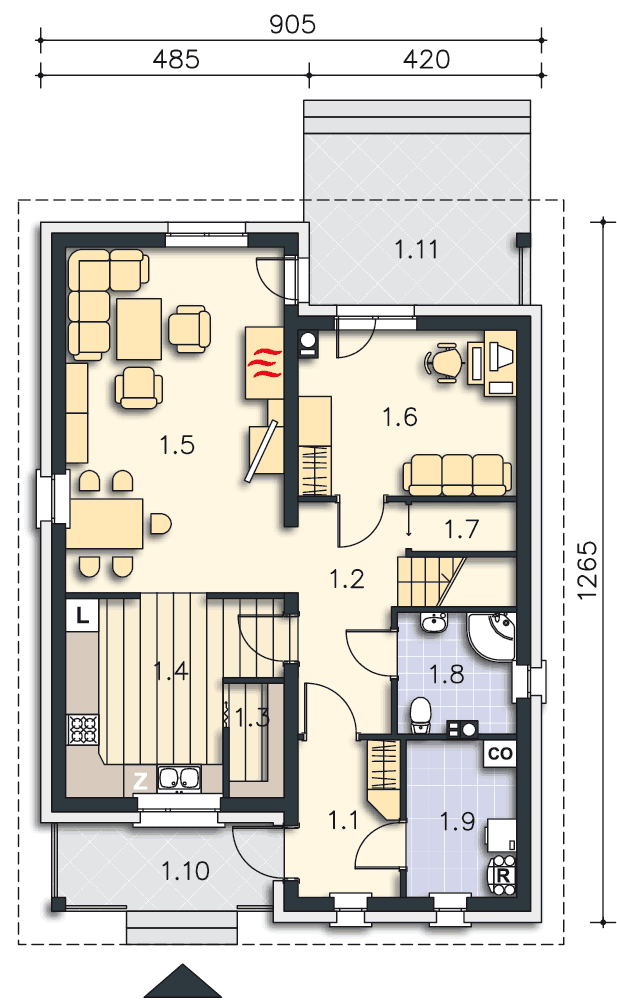 Mam pytanko. Jak gleboki jest ten uskok z przodu domu (wysunieta kuchnia)?