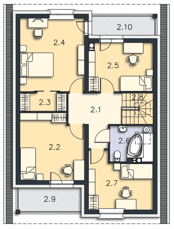 Spoko domek tylko mógłby być jeszcze garaż a ten balkon na dole powinien być bardziej wysunięty aby robił za taki taras.